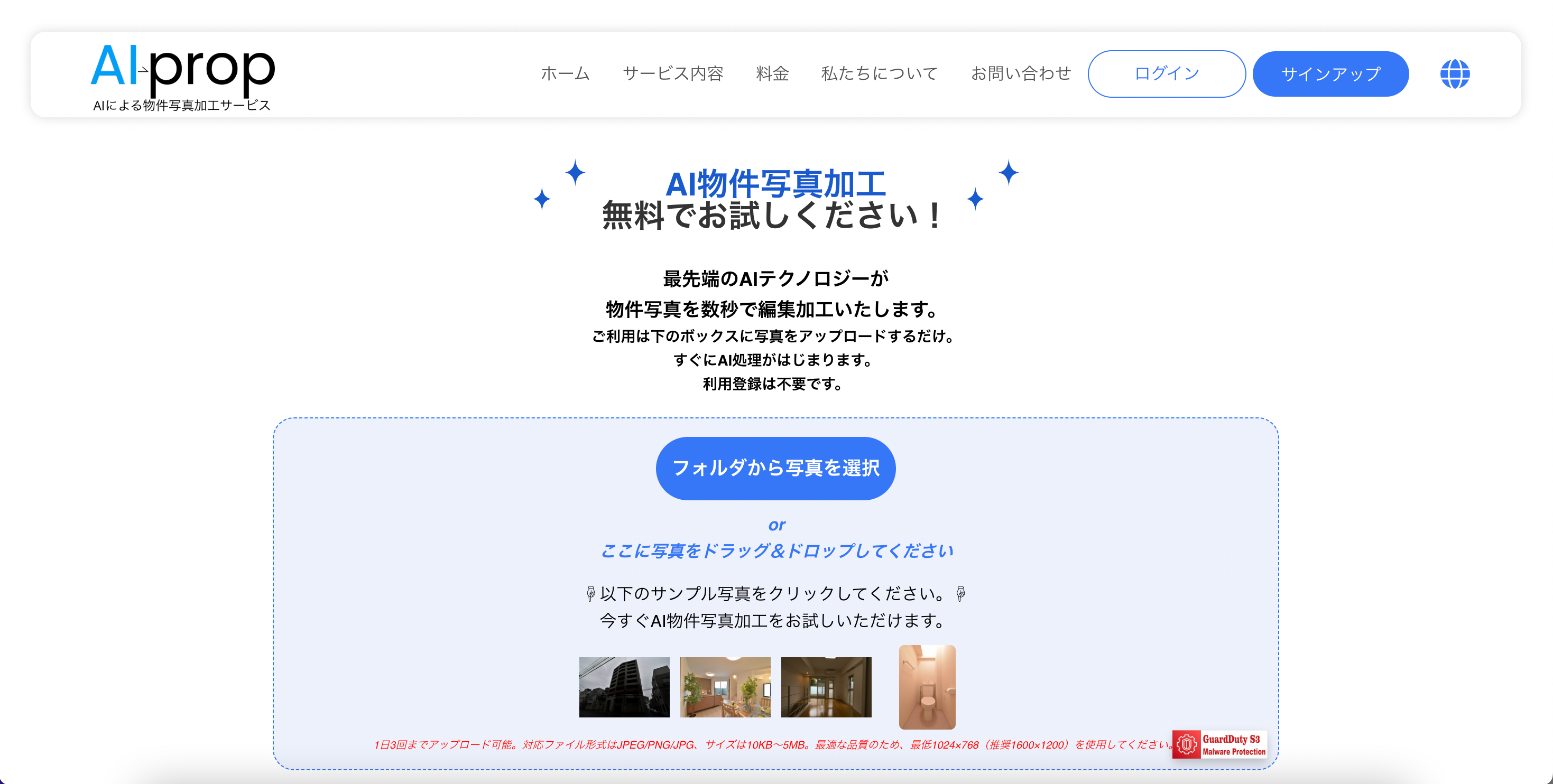 AIによる物件写真加工を、まずはぜひお試しください。