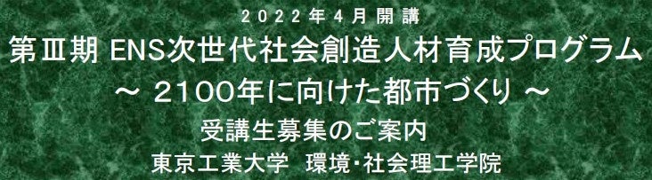東京工業大学 社会人向け講座ENS次世代社会創造人材育成プログラム ~ 2100年に向けた都市づくり ~