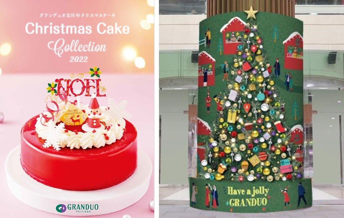 ジェイアール東日本商業開発株式会社(本社:東京都立川市、代表取締役社長:小沼 智子)が運営する商業施設グランデュオ立川では、2022年12月25日(日)まで「Have a jolly GRANDUO」と題し、多摩エリアの洋菓子店のとっておきのクリスマスケーキや家族、大切な人に贈るクリスマスギフトなどを販売します。クリスマスケーキは「ネットでエキナカ」で2022年12月18日(日)まで予約受付中。グランデュオ立川の1Fエントランスには2022年11月16日(水)からクリスマスツリーが登場!館内ではクリスマスを楽しむトピックをたくさんご用意いたします。お客さまの暮らしの中の小さな幸せに寄り添い、心地よい場所と時間をお届けしてまいります。