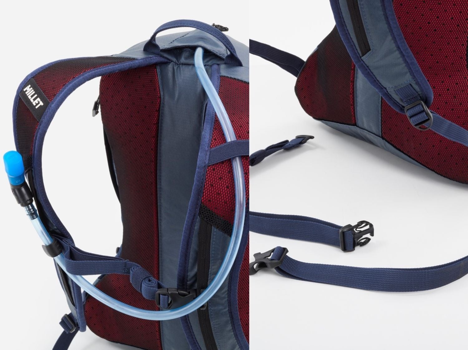 また、小型ながらも収納力を確保するために備えられた両サイドのメッシュポケットやフロントのバックル留めのバンジーコード(30L、20L、女性用28L、女性用18L)、それに沿って配されたデイジーチェーンで構成され、汎用性の高い収納を実現しています。