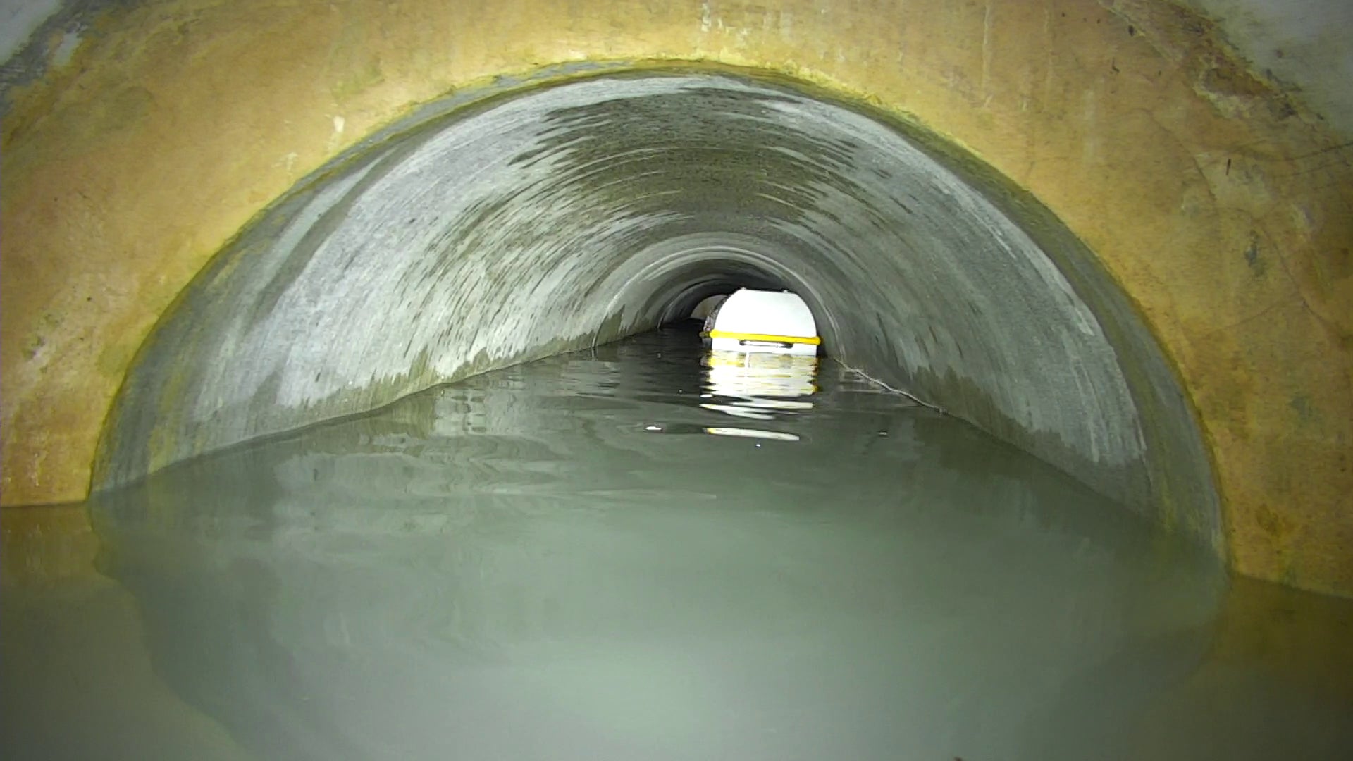 船と同じく水面を航行しますので、流水の有無にかかわらず、水位のある下水道など管渠・暗渠を点検・調査することができます。4K高画質カメラ搭載により大口径管のスクリーニング調査も可能にしました。