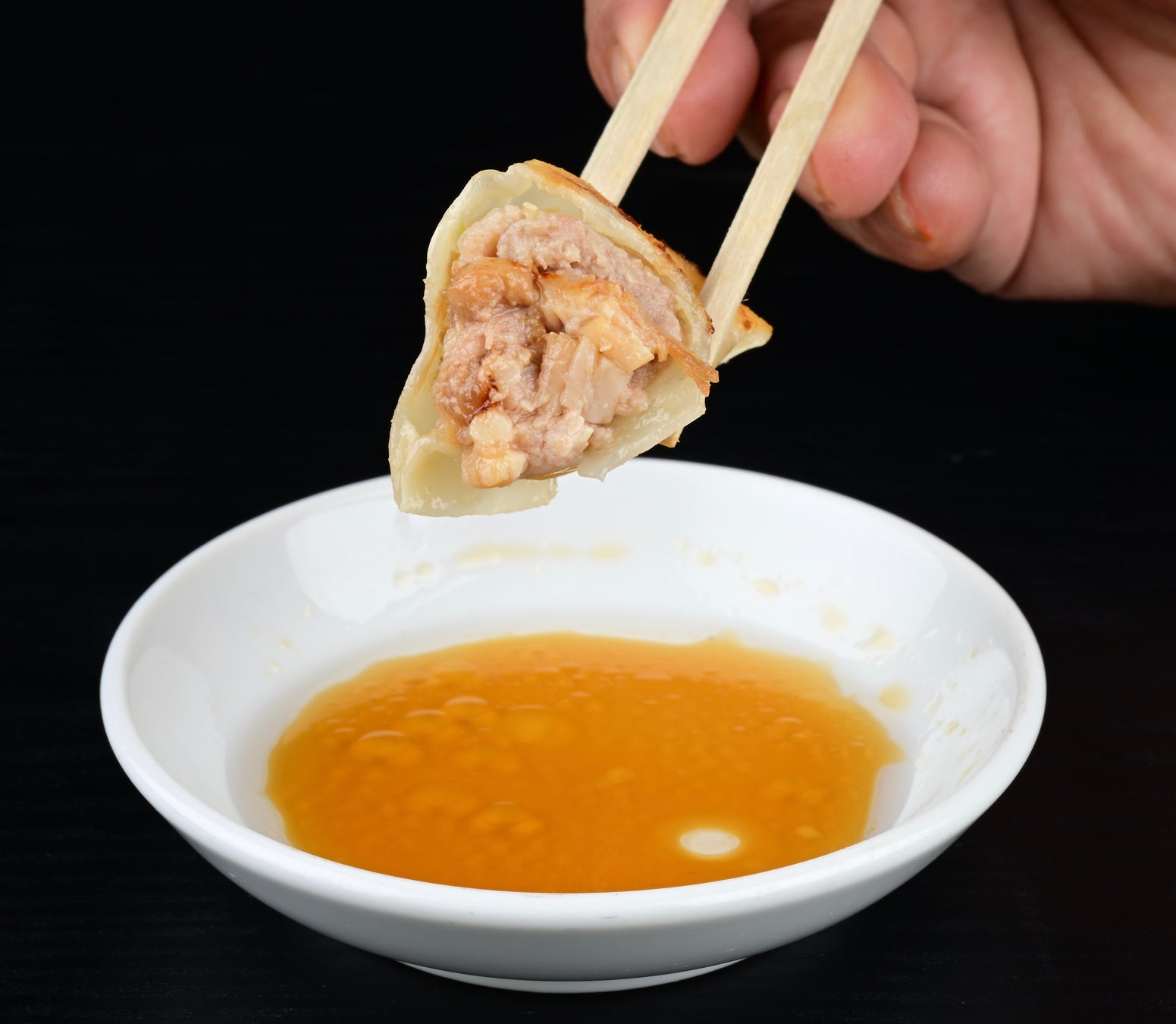 また餃子のタレには人麺の醤油ラーメンの「かえし」と酢を混ぜた特製ダレでお召し上がりいただけます。