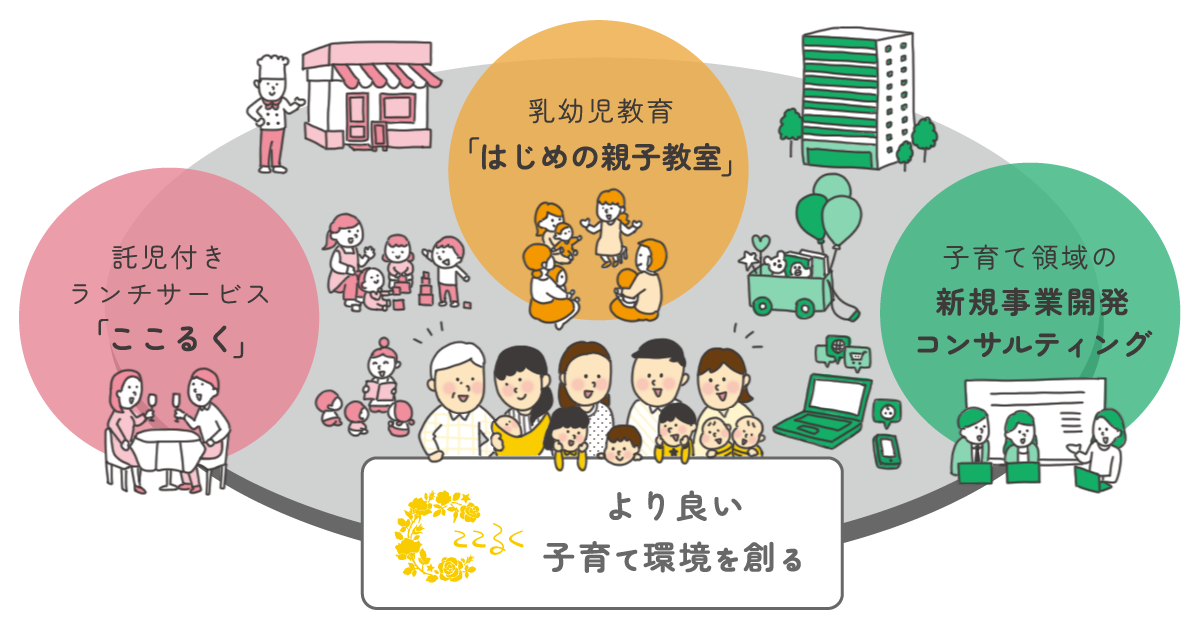 株式会社ここるく(本社:東京都渋谷区、代表:山下真実 以下、ここるく)は、2013年本邦初の「託児付きランチサービス」を立ち上げ、「ちょっと抱っこを代わってもらって得られるパパ・ママの自分時間が、心にゆとりを生み、子育てをより良いものにする」という想いで突き進んで参りました。