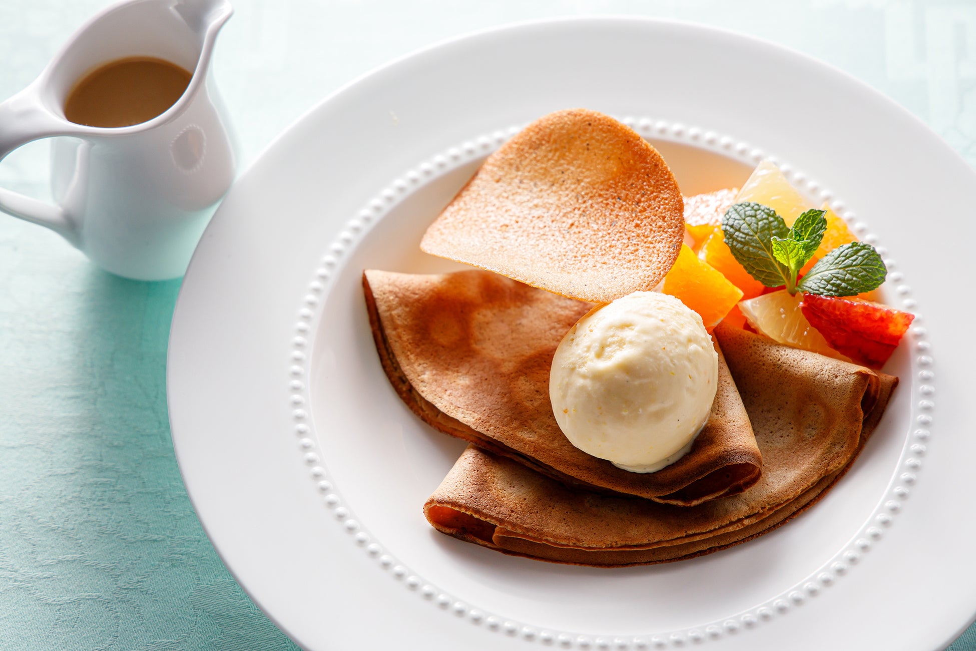 万平ホテル 「ロイヤルミルクティーのクレープシュゼット風」