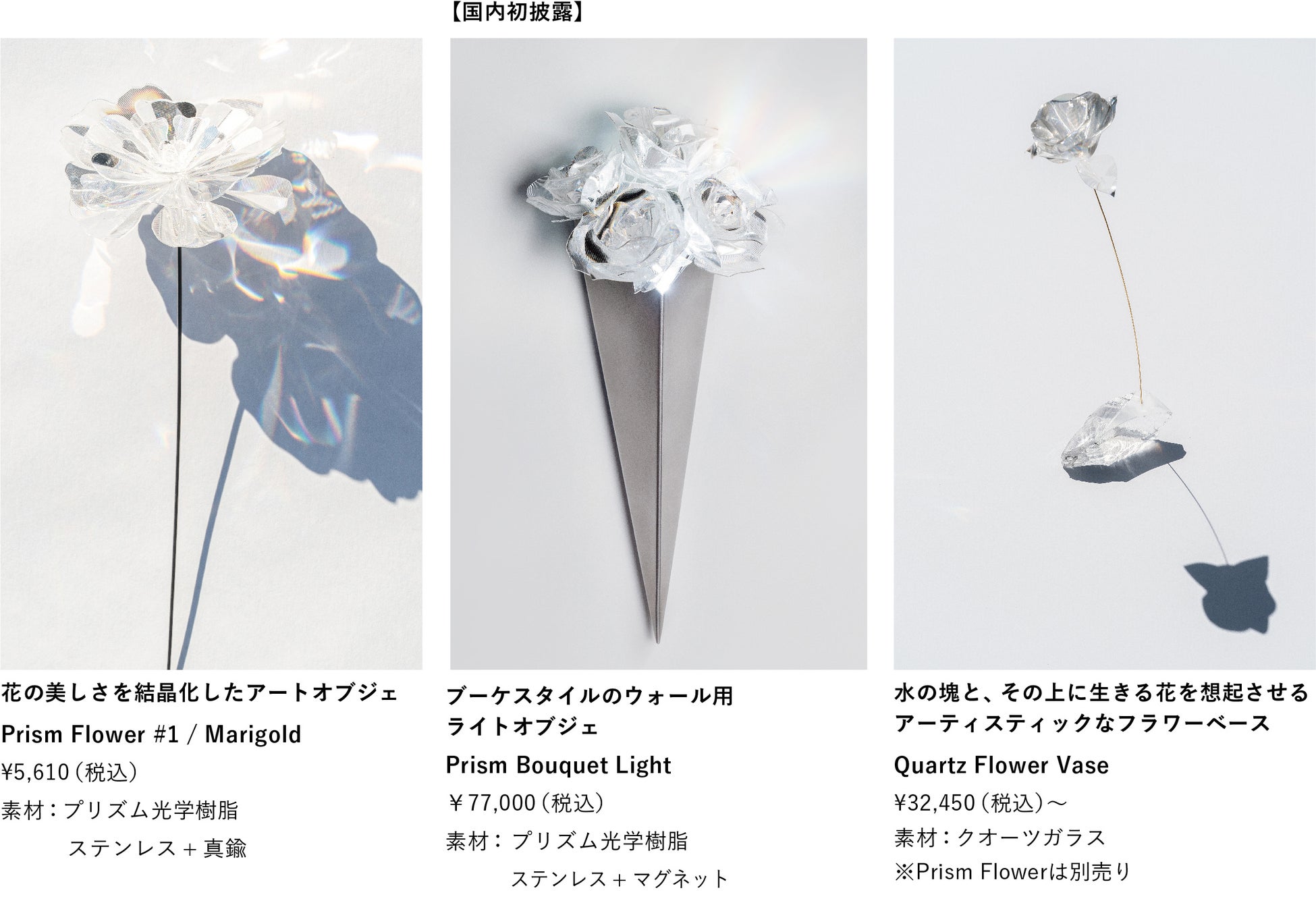 - 虹色の色彩を放つプリズムジュエリーや希少なクオーツガラスのフラワーベースまで、クリスマスシーズンに最適なアートプロダクトをラインナップ