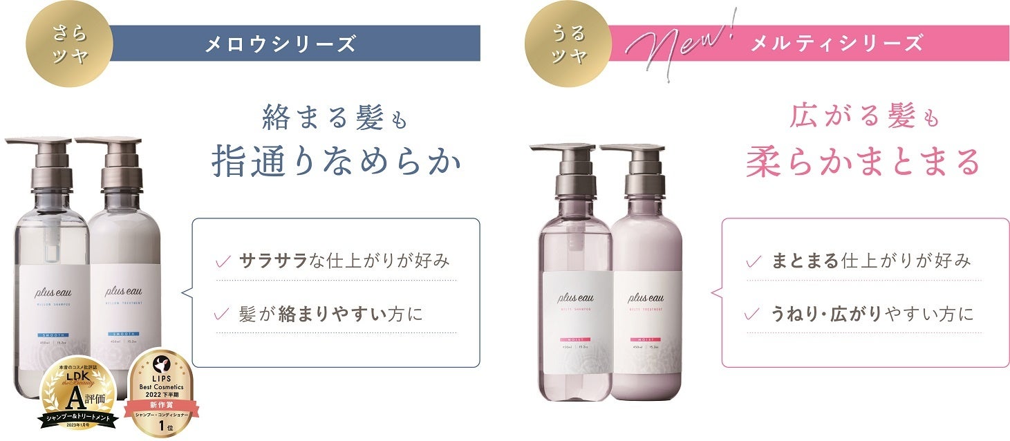 「プリュスオー メロウシャンプー/メロウトリートメント」は、2022年7月の販売開始以降、そのサロン帰りのような上質な仕上がりから多くのお客様にご愛顧いただき、「LDK the Beauty」2023年1月号 シャンプー&トリートメント部門【総合評価A】、LIPS ベストコスメ2022下半期新作賞 シャンプー・コンディショナー部門【第1位】、WWD BEAUTY 2023年上半期ベストコスメ シャンプー・コンディショナー部門【総合1位】を受賞するなど、美容のプロからも高い評価をいただいており、SNSでも幾度となく話題になっている製品です。