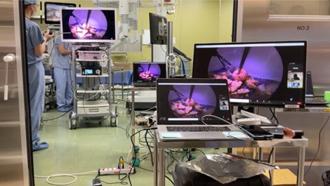 北海道大学病院、帯広厚生病院、市立釧路総合病院の3施設をクラウドサービスで繋ぎ、手術の映像や音声を術者・遠隔の指導者間で共有。遠隔でロボット手術、腹腔鏡手術、開腹手術等の指導を実施する。