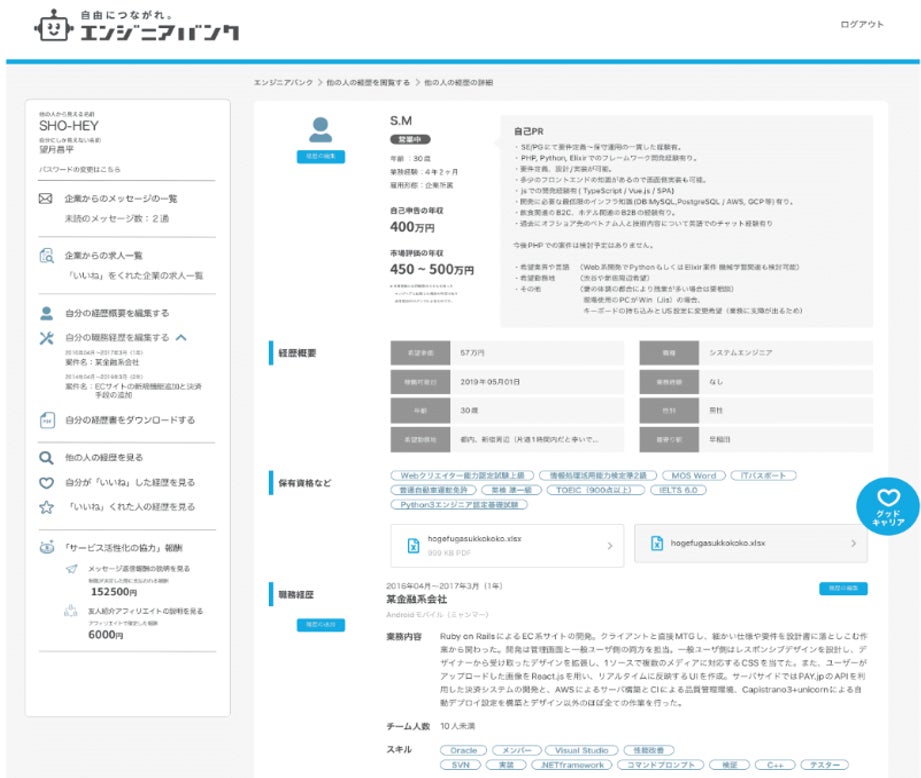 エンジニアから見て、トレンドの技術を使っているか、経歴に見合った報酬になっているかなど評価します。また、自分の経歴に近しい人の経歴が毎日レコメンドされ、こういう経歴を目指せば良いのかと気付きを与えるコンテンツとして役立ちます。