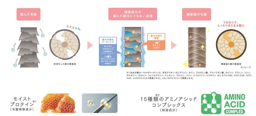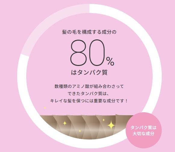 タンパク質の構成成分となるアミノ酸が、タンパク質補給をしてまとまりのある、うるぷる髪にケア!