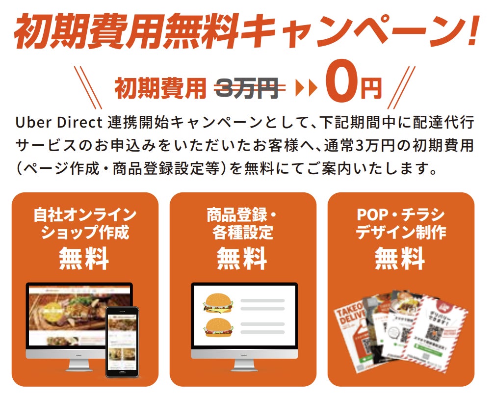 Uber Direct 連携記念として、初期費用@3万円が→無料になるキャンペーンを実施中。