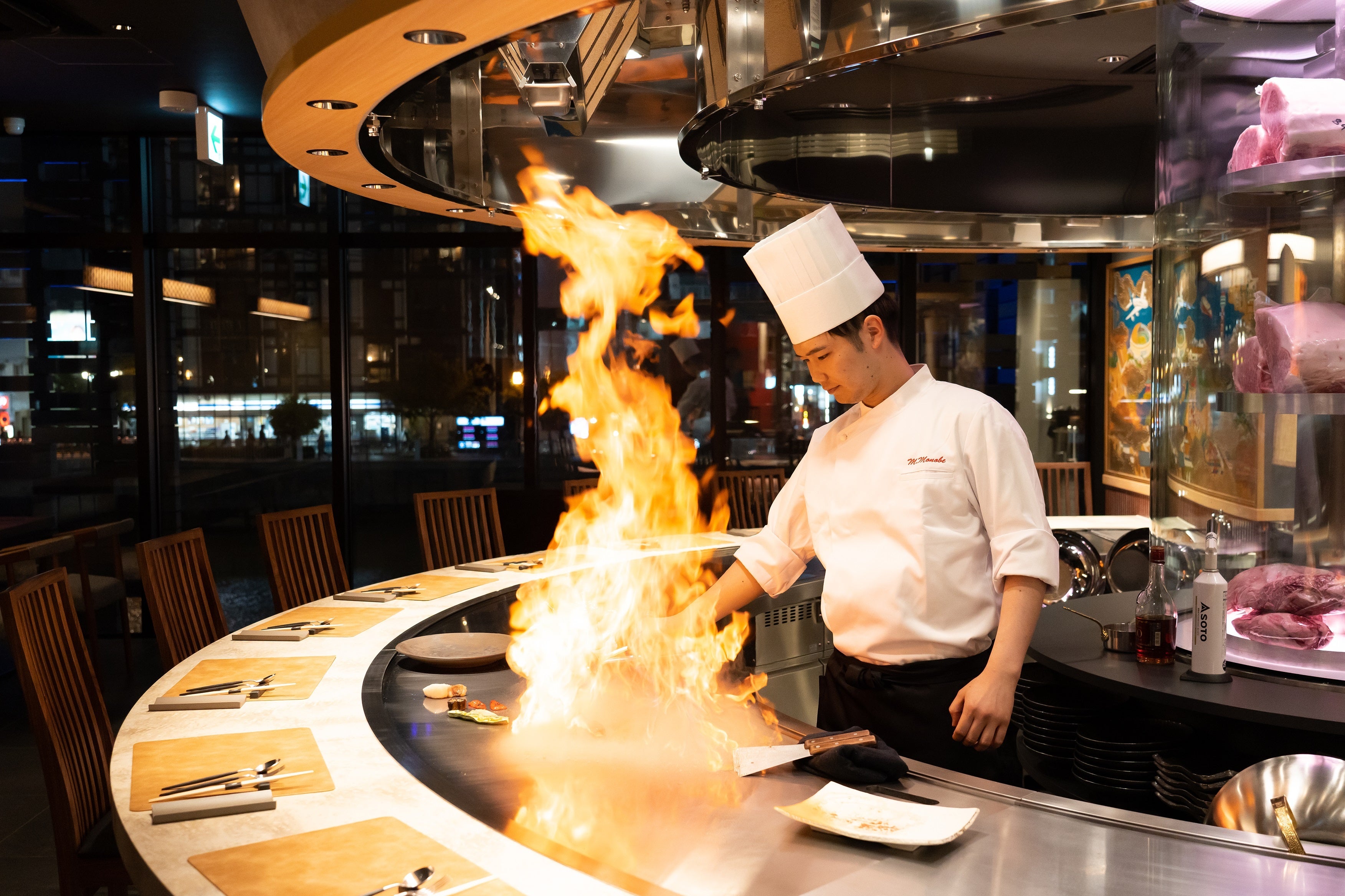 質の高い松阪牛や神戸牛をはじめとし、鮮度の高い魚介・旬の野菜を仕入れ、匠の技をもつ料理人が目の前のカウンターで鮮やかなパフォーマンスと共に調理し提供する。現在関西で4店舗(布施本店・梅田32番街店・難波御堂筋店・西宮北口店)東京で2店舗(六本木店・新宿店)を展開しており、今回、那珂川が流れる中洲の西に位置する”西中洲”に7店舗目の「ニュー松坂西中洲店」をオープンする。