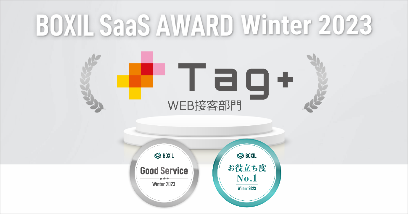 統合型マーケティングツール【Tag+】「BOXIL SaaS AWARD Winter 2023」WEB接客部門で「Good Service」「お役立ち度No.1」に選出