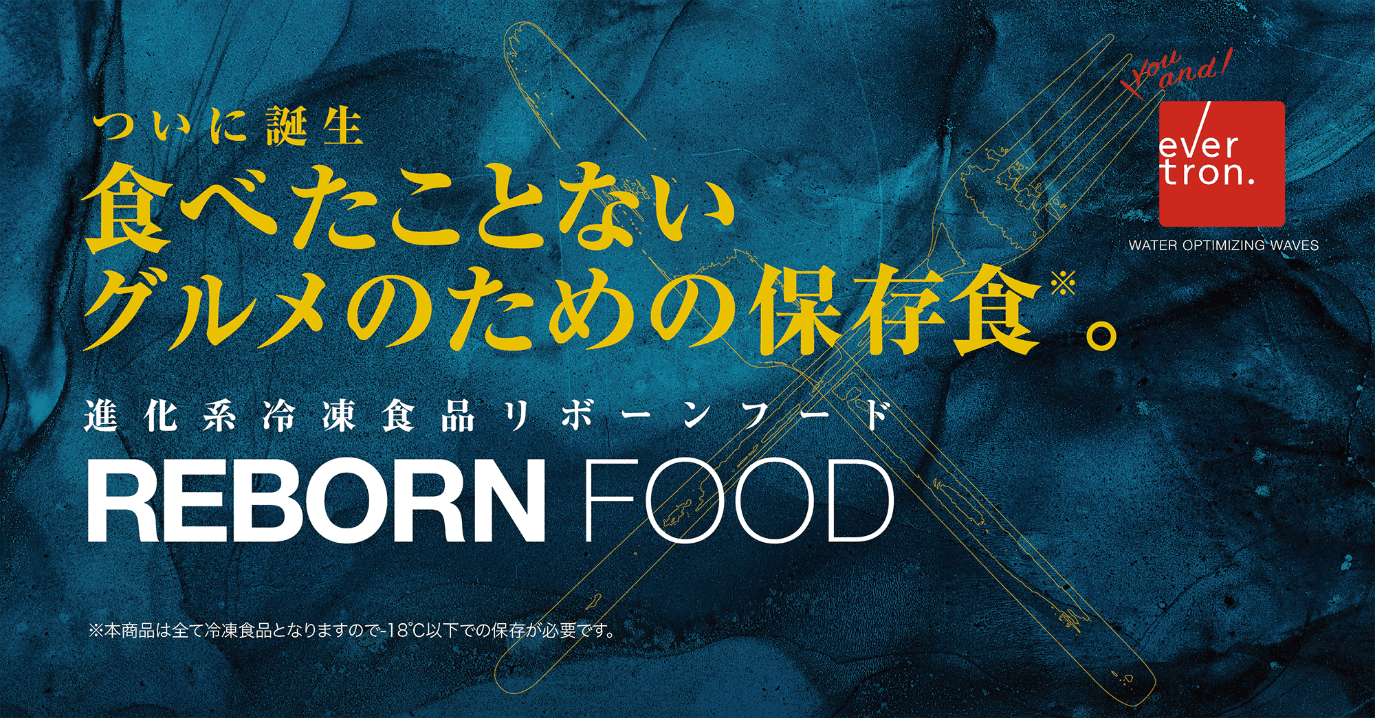 株式会社エバートロン(東京都港区)は、グルメの皆様にもご満足いただける保存食※ 進化系冷凍食品 リボーンフードの新商品を開発致しました。