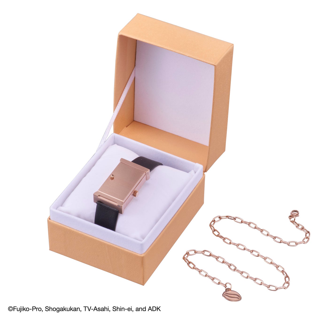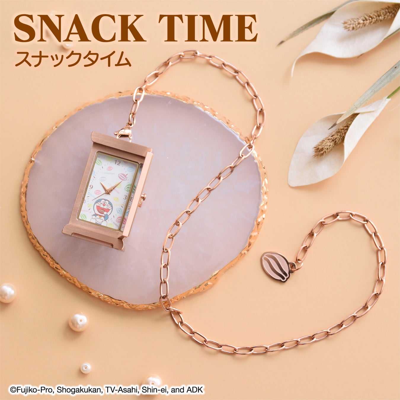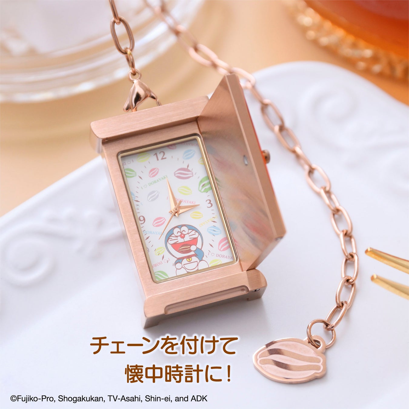 おやつをテーマに、どこでもドアの形をしたローズゴールドで高級感のあるドラッチの誕生です。ベルトをチェーンに付け替えることで、腕時計だけでなく、懐中時計としても使用することができます!500本の限定販売です。
