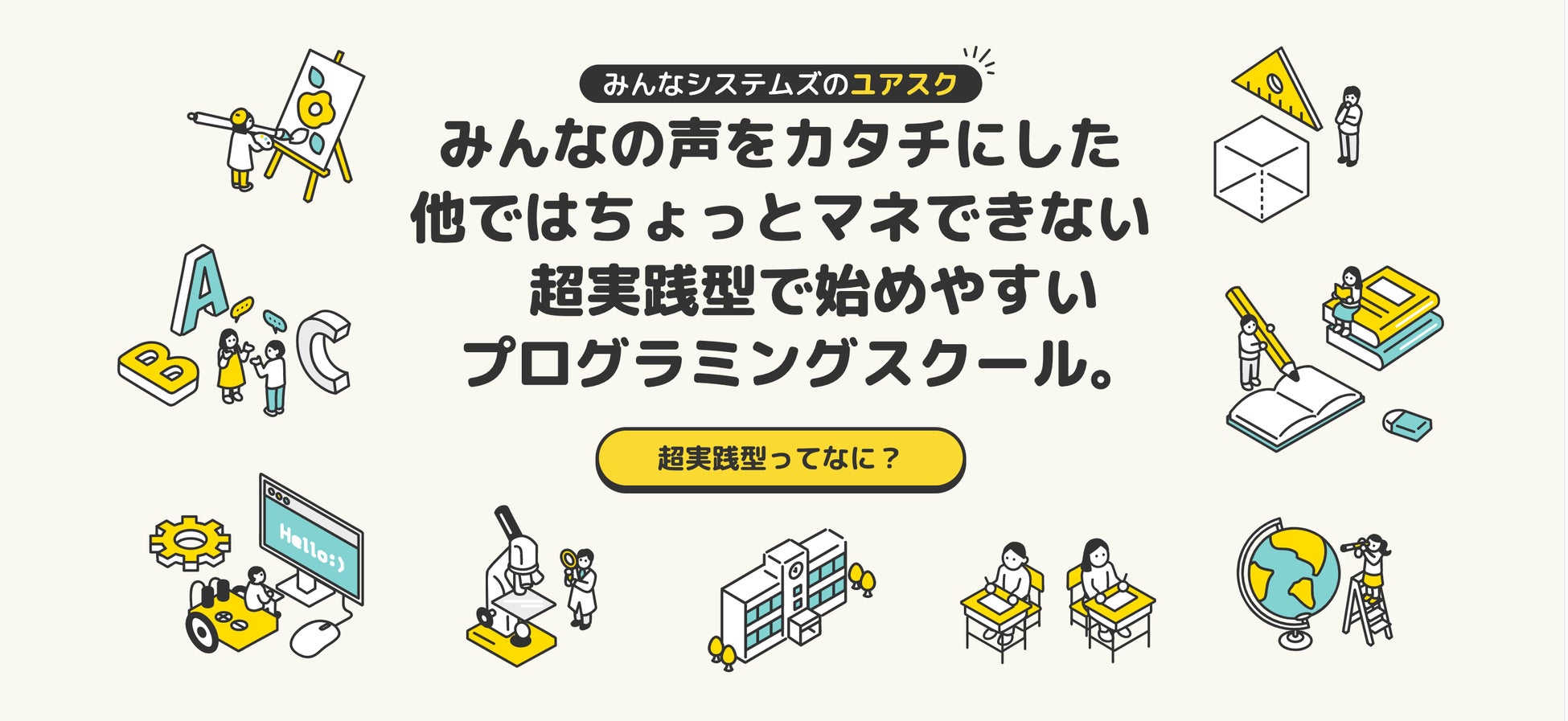 株式会社みんなシステムズ(本社:東京都墨田区、代表取締役:野田祐機)は、月額15,400円で超実践型・社会人向けプログラミングスクール「ユアスク」を開校します。