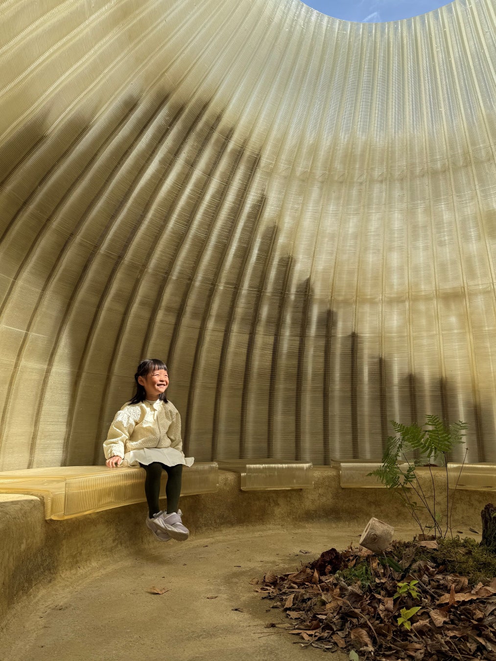 建築の特徴として、構造体には生分解性樹脂を採用、外装には一般市民の方にご参加いただいたワークショップで作られた「シーズペーパー」(植物の種をすきこんだ和紙)を使用しています。さらに、伝統工芸の職人や福祉施設の方によって作られた和紙も組み合わせ、多様な人々の参加によって完成した建築物となっています。使用後に廃棄物となるのではなく、自然に還る建築を目指しました。