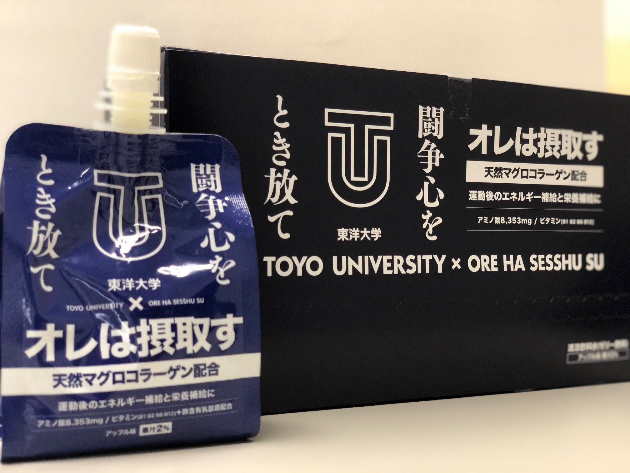 『オレは摂取す』は、東洋大学陸上競技部長距離部門はじめ、陸上中・長距離を中心に多くのトップアスリートが愛用するリカバリーゼリー飲料(1個180g)。アミノ酸8,353mg、ビタミンB群(B1,B2,B6、B12)、鉄分1日摂取量分(7.5mg)など配合したリンゴ味のゼリー飲料。同社の強みでもある、日本国内で流通消費される「お刺身用天然マグロ」の皮のみを原料に使用したコラーゲンペプチド「TC3000」が主原料であり、TC3000は静岡県立大学との共同研究で「筋タンパク合成の促進に優位性のある『分岐鎖アミノ酸』を多く含んでいること」が確認され、未利用資源を有効的に活用し、原料から抽出まで一貫した管理体制のもとで、トレースも確立した安心で安全なオンリーワンコラーゲンである。