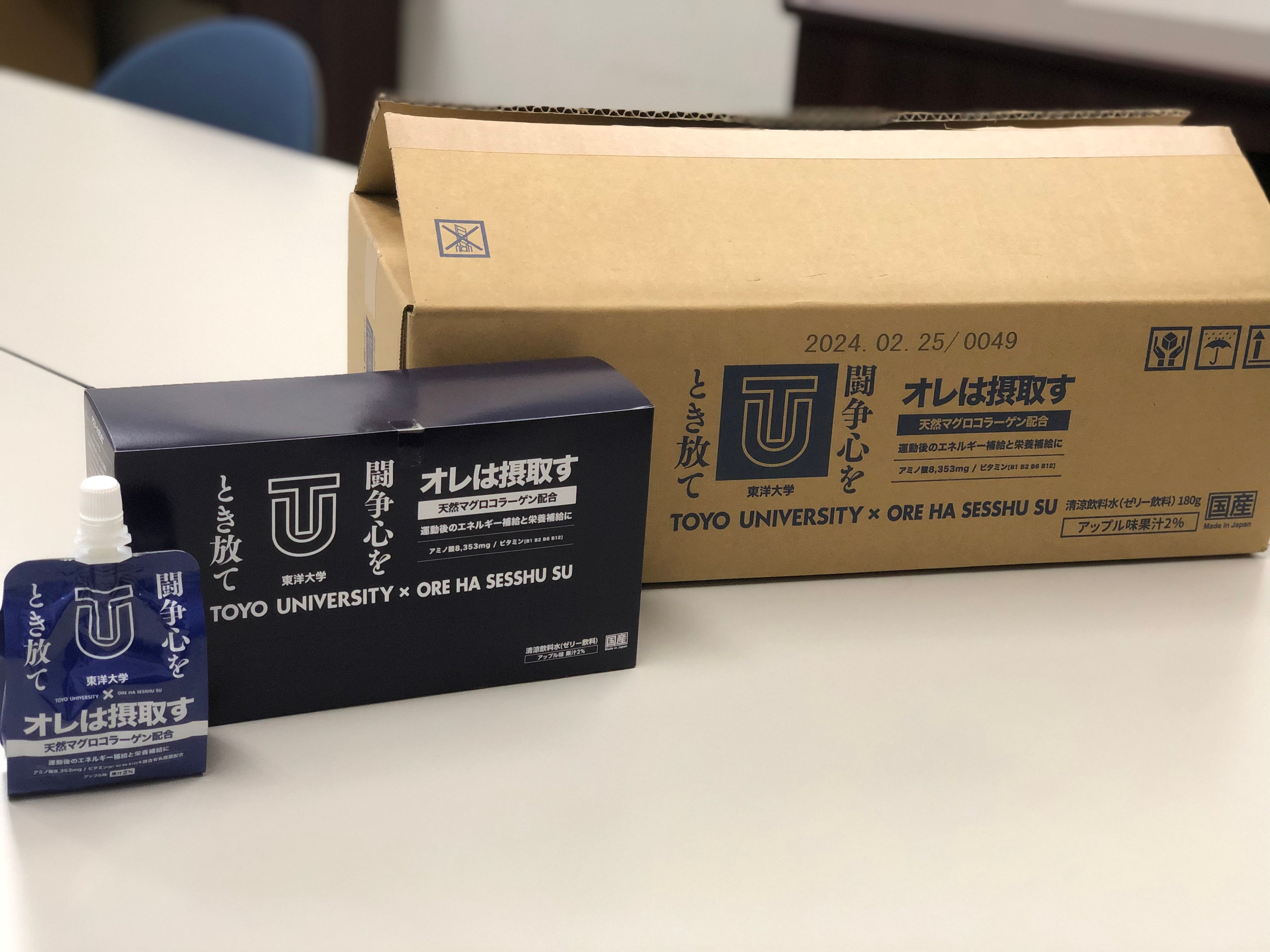 ダイトー水産株式会社(本社:静岡県焼津市、社長:齋藤啓治郎)は、学校法人東洋大学(理事長:安齋隆)と2022年10月1日付で商標権使用に関する契約を締結し、ダイトー水産株式会社が販売するリカバリーゼリー飲料「オレは摂取す」とのコラボ商品『オレは摂取す 鉄紺バージョン ~闘争心をとき放て~』(2022年バージョン限定販売)を2022年12月1日発売開始しました。