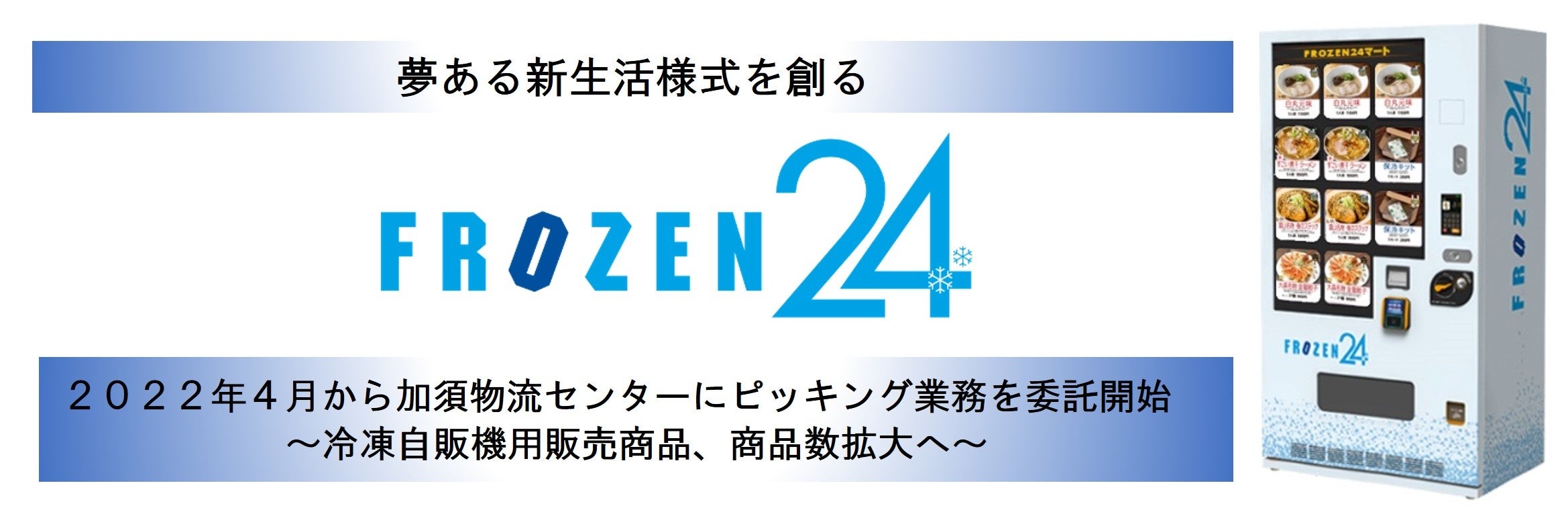 【FROZEN24】は冷凍自販機向けの冷凍商品を多く取扱い、自販機運営者への卸商品提案をしております。現在【FROZEN24】では50種程の商品を取扱っていますが、大半が製造元からの直送となっています。取扱い商品は、適正容器に収納しておく必要がありますが、各商品製造元にて対応出来ない場合には卸商品として取扱いが不可でした。しかし今回、シルバーライフ社加須物流センターに物流拠点を構築し、取扱い不可であった各社商品を卸ラインナップに導入実現可能となりました。2022年4月中には取扱い商品は100種類以上になる予定です。取扱い商品は、全国の有名店や大手食品メーカー、各ジャンルの人気専門店商品など、幅広く用意しており、自販機ロケーション、エリアマーケティング等から千差万別のお客様ニーズに合わせるべく商品提案をおこなっていきます。