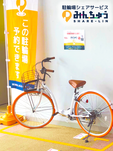 「みんちゅうSHARE-LIN」はわずかな時間から空いている土地・スペースを誰もが貸し出すことができ、誰もが借りることのできる駐輪場のシェアサービスです。スマートフォンアプリ (Android 版・iOS版)、WEBから貸し出し、利用予約の全てを行うことが可能です。