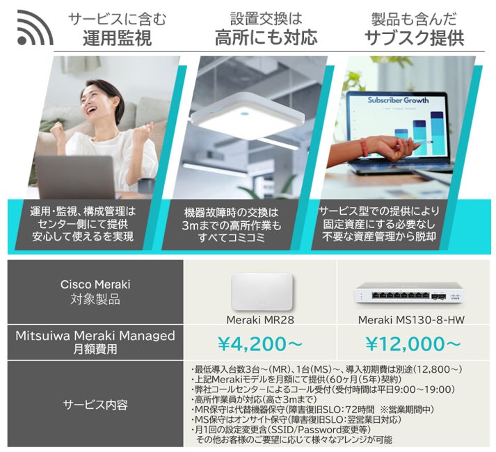 ミツイワ、無線LAN環境のサブスクサービス提供開始、Cisco Meraki®を使い製品・構築・保守運用サービスまでを包括的にご提供