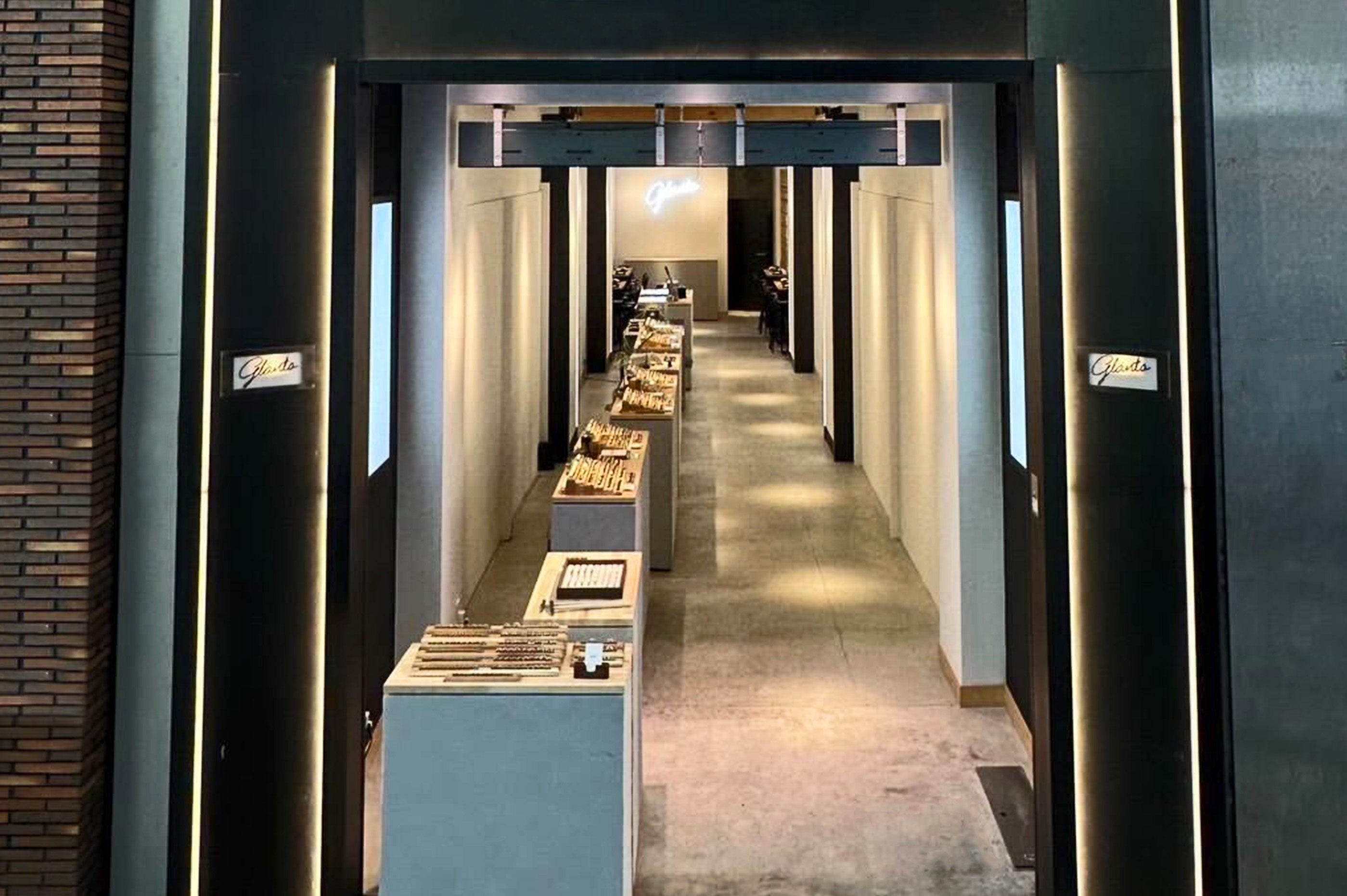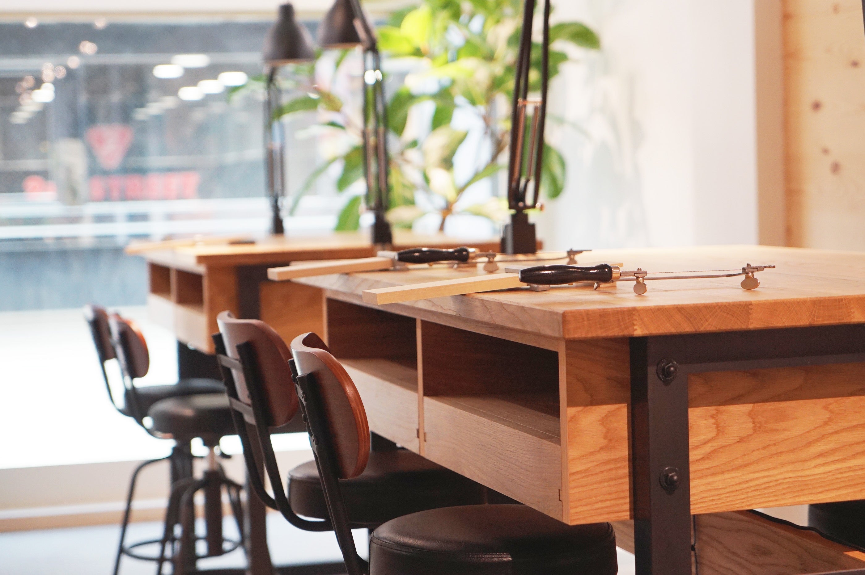 1階には姉妹店のアクセサリーショップ「glanta」が併設。階段を進んだ2階に「CRAFY心斎橋店」はあり、1階の賑やかな店内とはまた違う、落ち着いた雰囲気の工房で手作りの時間をお楽しみいただけます。
