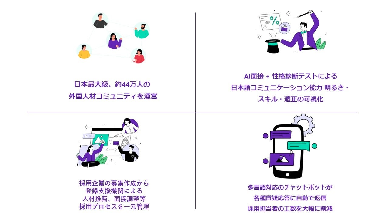 この国策の流れを受け、ホテル宿泊及び飲食業界における外国人材採用は急速に拡大しております。一方で採用企業と人材紹介を行う紹介企業・登録支援機関の数も急速に拡大し、採用企業側におかれましては採用工数の拡大、ミスマッチによる早期退職者の増加といった課題が、紹介企業・登録支援機関におかれましては営業効率の低下、紹介可能人材の確保、紹介精度の低下といった課題が深刻化しております。