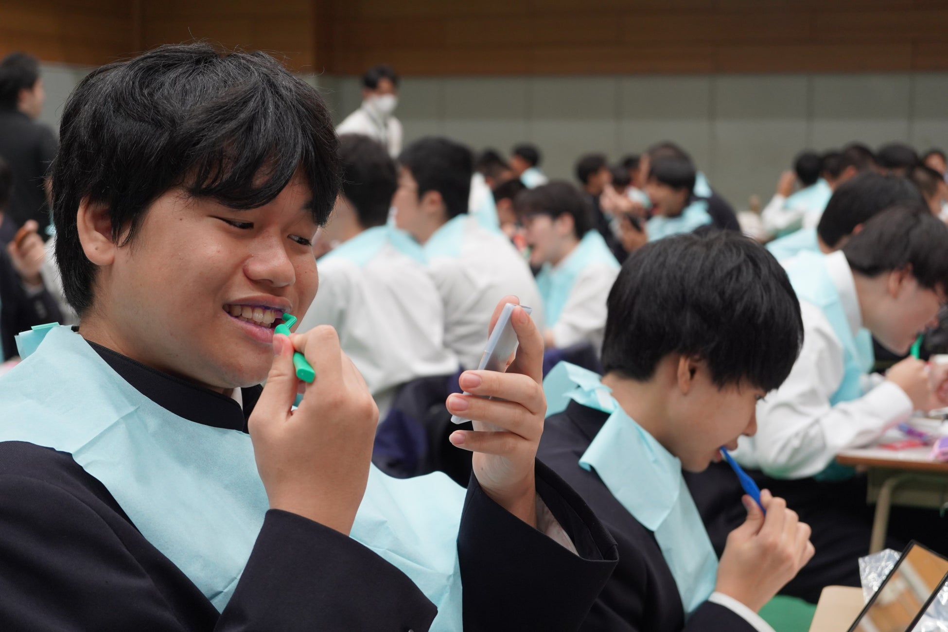 正則学園高等学校では、2022年から“リトルジェントルマン”育成の一環として、毎年1年生に向けてオーラルケア教室を開講しています。いい歯、いいお口を目指し、今後も活動を続けていく予定です。