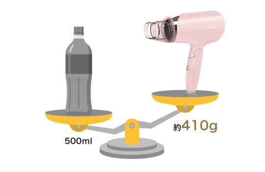 500mlペットボトルよりも軽いので疲れにくく、どなたでも使いやすいドライヤーです。