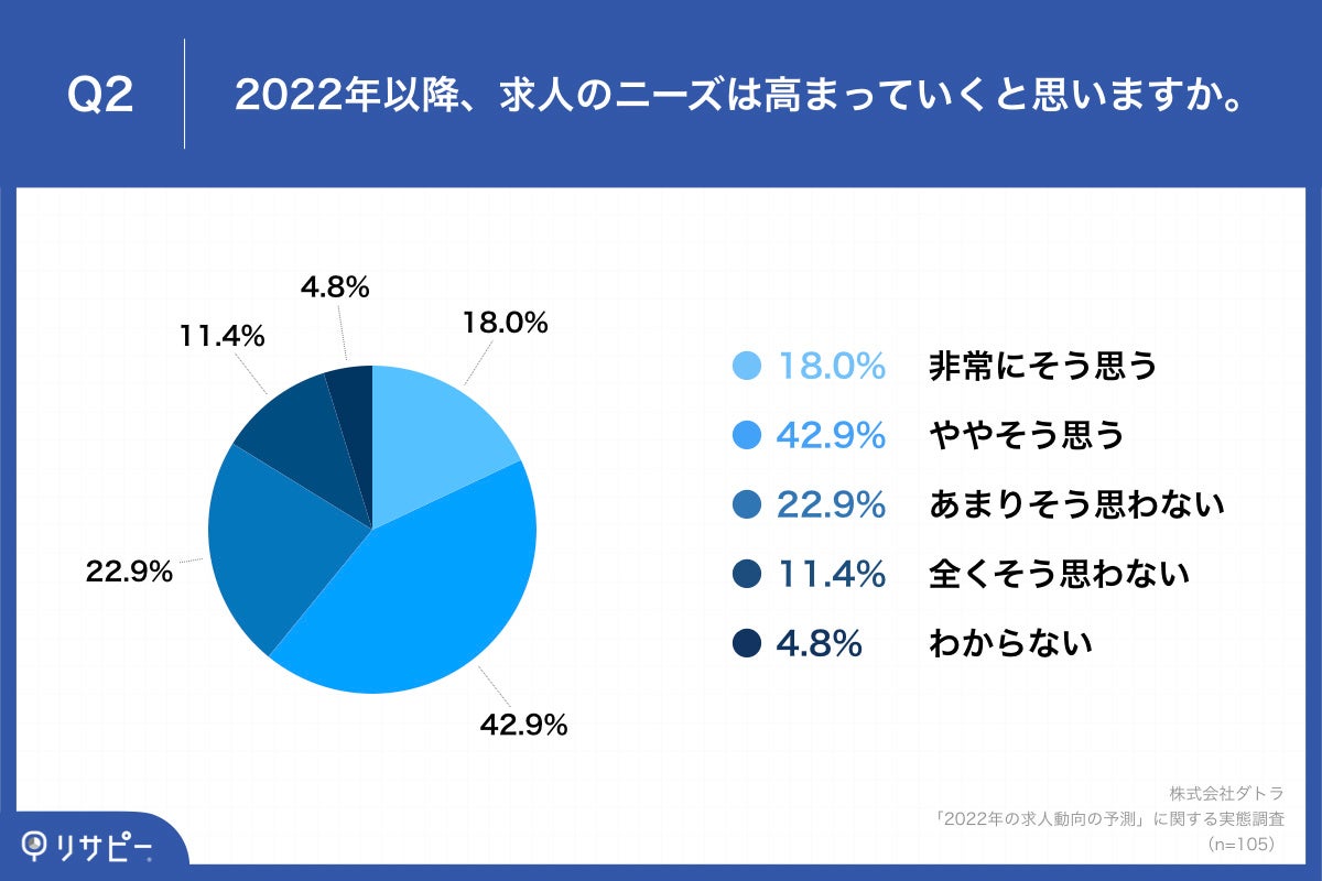 - 約6割が、「2022年以降、求人のニーズは高まっていく」と予測