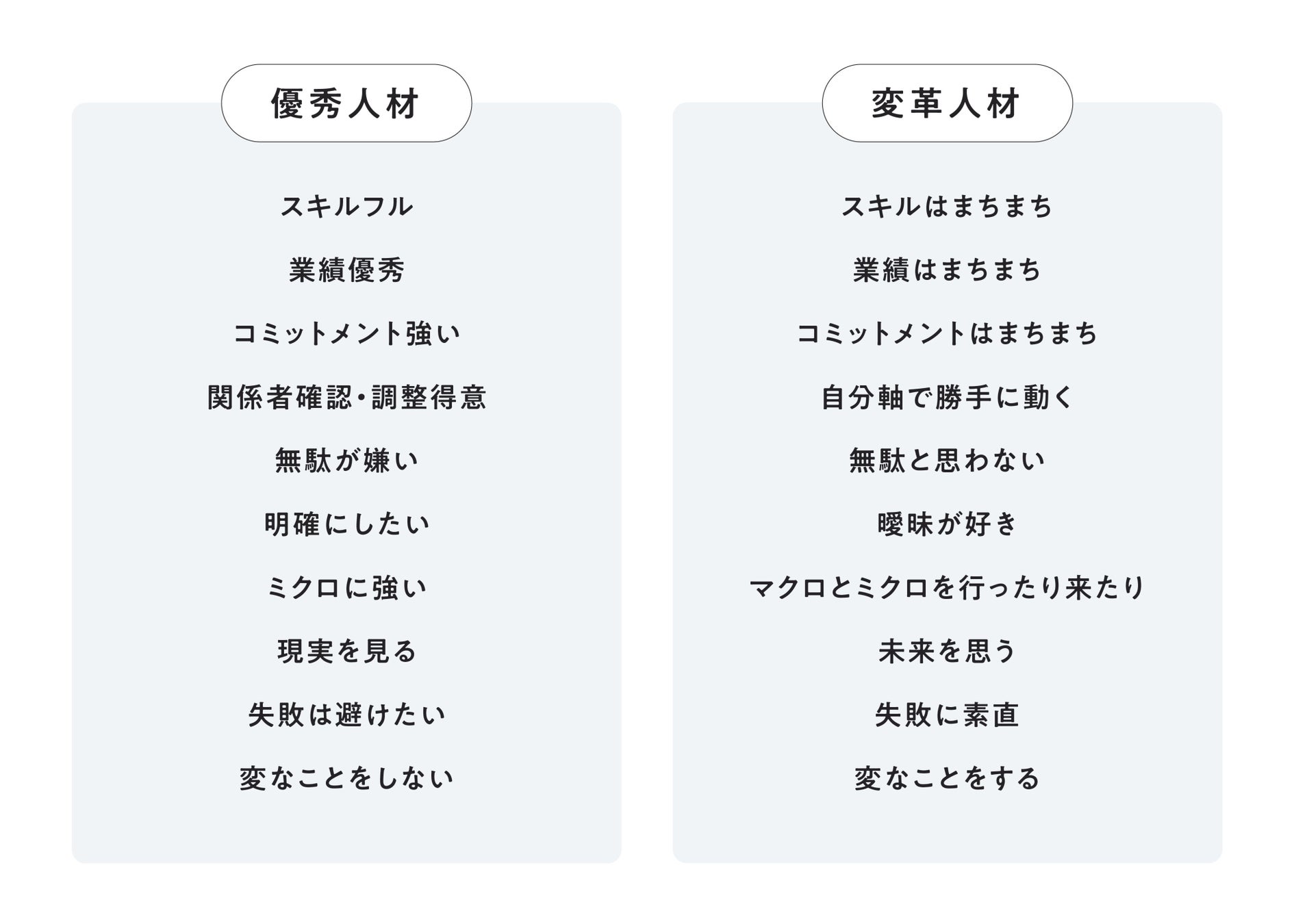 AlphaDrive/NewsPicksは、自分の個性を生かして、新規事業開発や企業変革につなげることができる人材を変革人材と定義しています。POTでは、こうした変革人材が持つ資質について研究してきました。