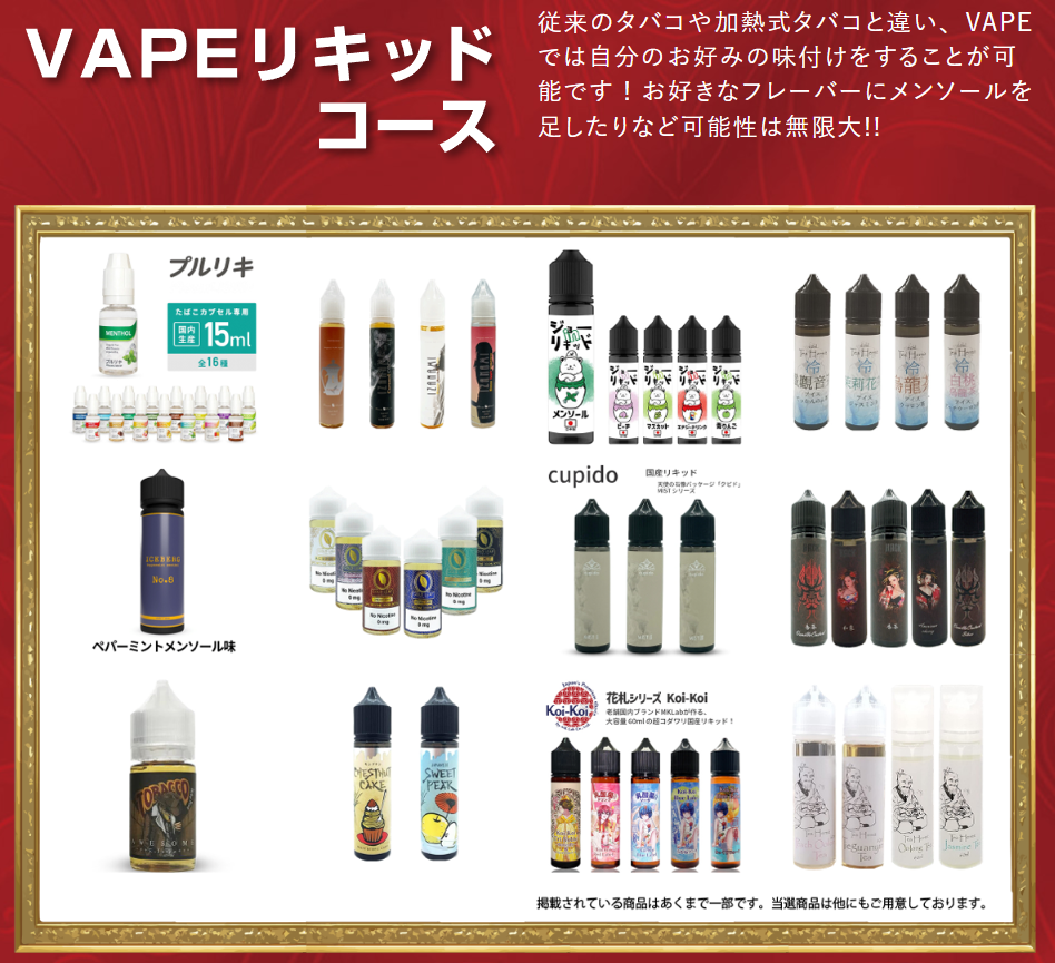 たばこカプセルが使える「ターレスプラス」や使い切りタイプの「りきっどや 使い切り」などが当たります!