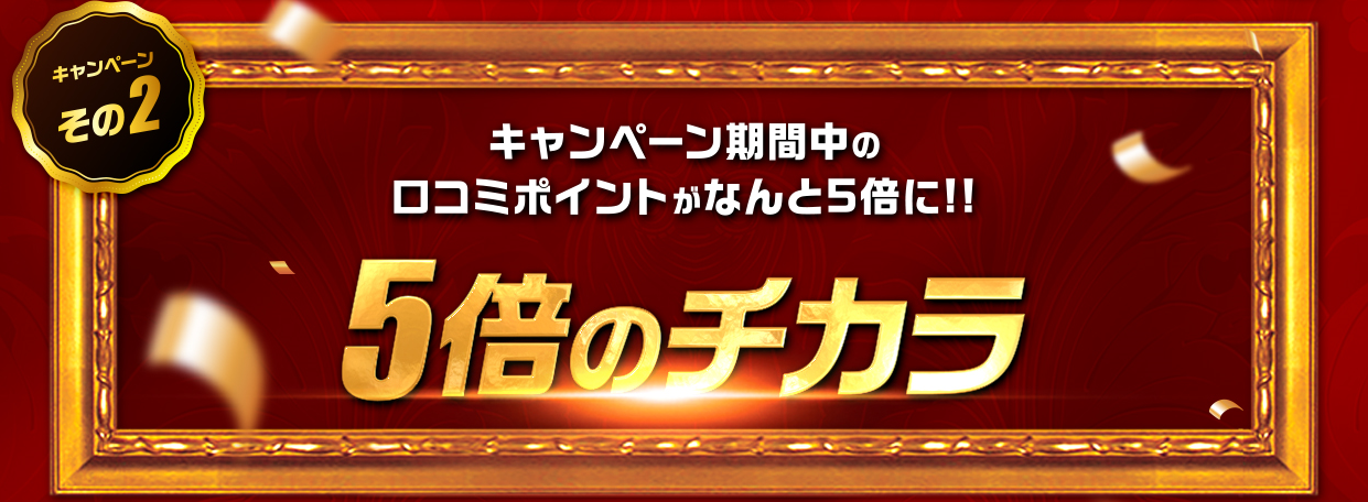 - 口コミ投稿でもらえるポイントが5倍!「5倍のチカラ」詳細