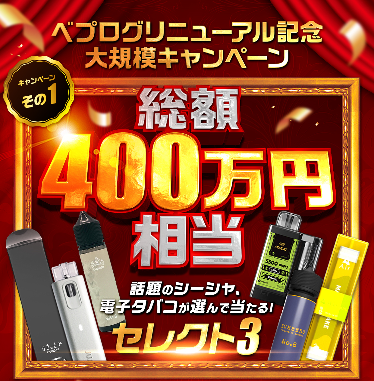 【総額400万円相当プレゼント】電子タバコ総合口コミサイト「ベプログ」がリニューアルオープン!リニューアルを記念して総額400万円相当のキャンペーンを開催中!
