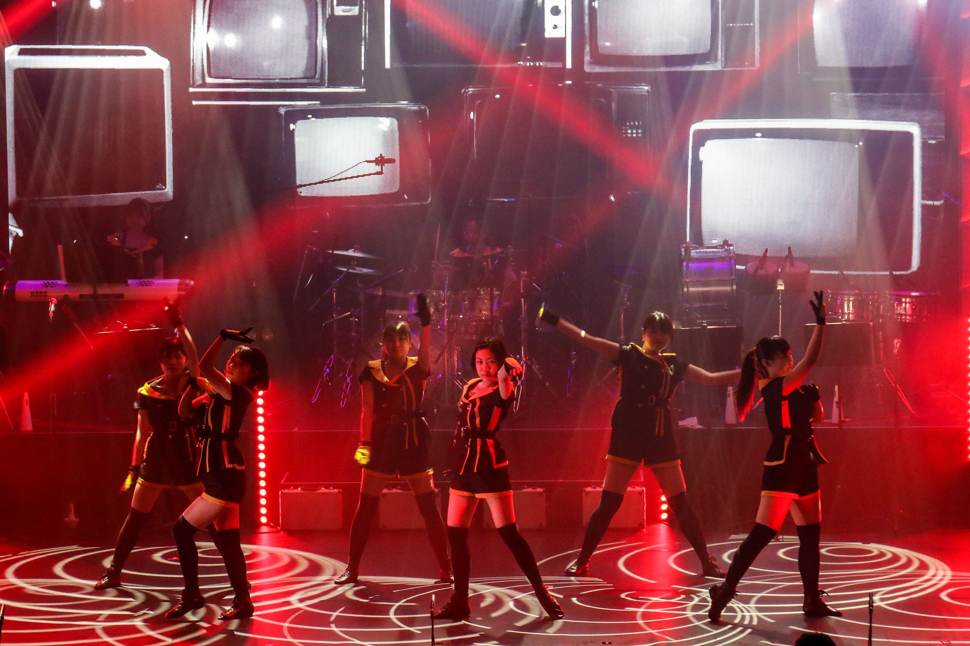 『Let's dance』からテンポアップして終盤に入ると、映像とリンクしたゲーム音楽スーパーマリオブラザーズのテーマが導入となって、なんとアニメ『おジャ魔女カーニバル』のテーマが飛び出してくる!アップテンポのアレンジで、フォーメーションを変えながらダンサブルに魅せて会場を大いに沸かせた。