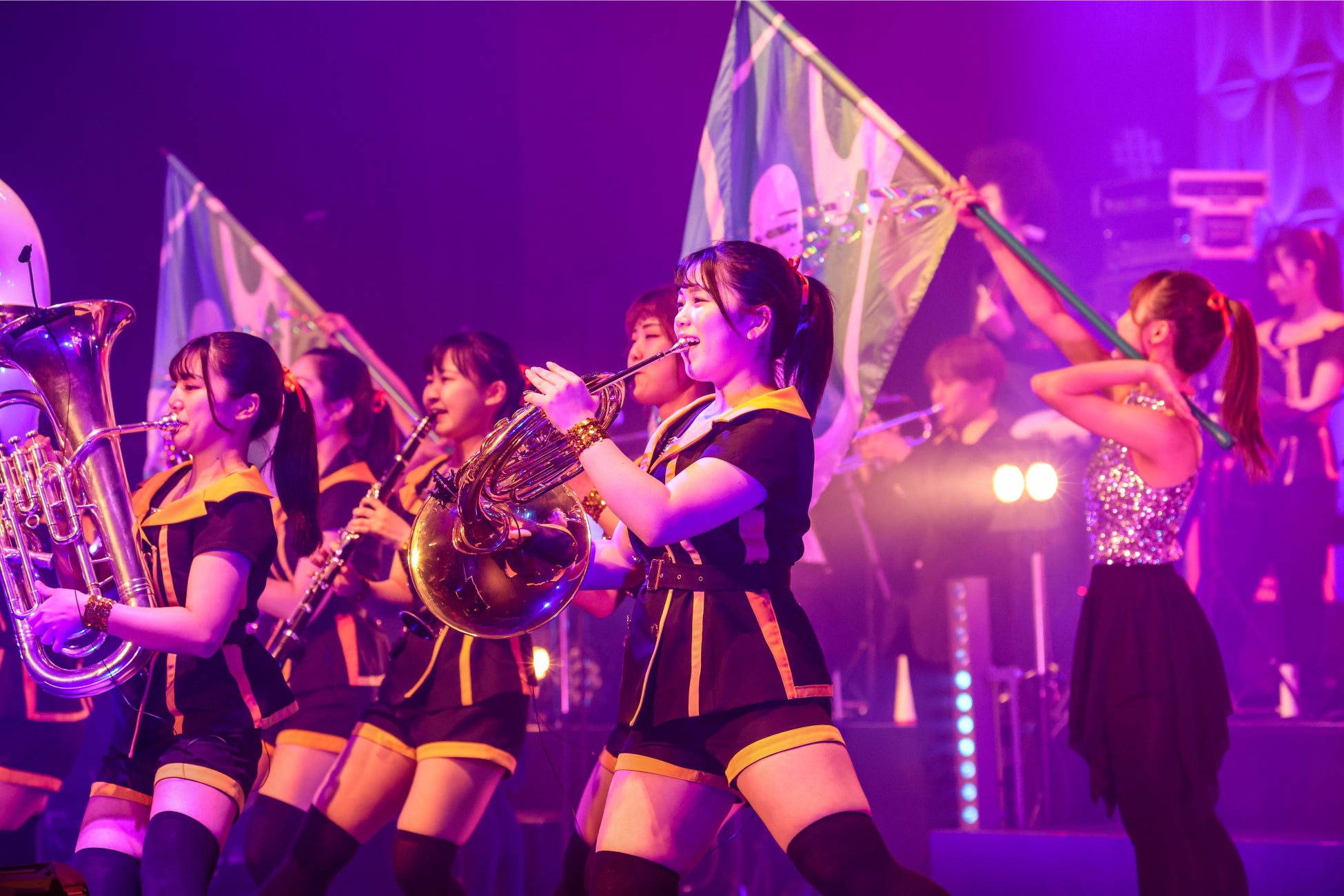 鳴り止まない拍手に迎えられて、アンコールは総監督のゆいなが紅潮した表情で登場。ショーの選曲と構成を担当する横山先生にも喜んでもらったという2曲目のオリジナル曲ができたことを嬉しそうに発表。それが今回のプログラムに入っていることに彼女自身もびっくりしたという。そのできたばかりの新曲『Range of O』がいち早く披露。未だダンスが付かない状態で、臨場感たっぷりの熱くストレートなブラスロックを聴かせてくれた。