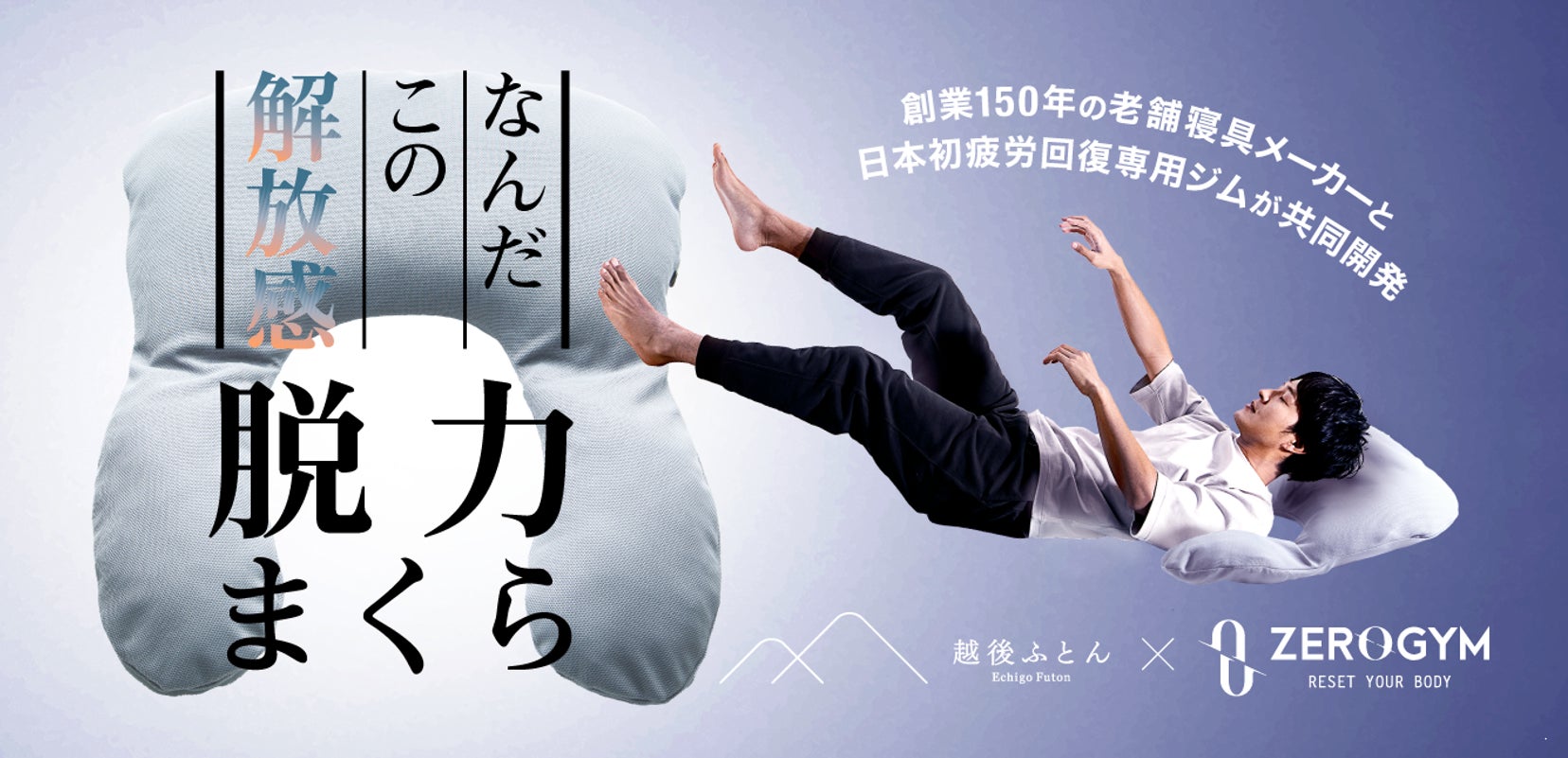 ~疲労回復専用ジム「ZERO GYM」と共同開発~睡眠時の呼吸にアプローチ『脱力まくら』2月8日(火)よりMakuakeにて先行予約販売スタート