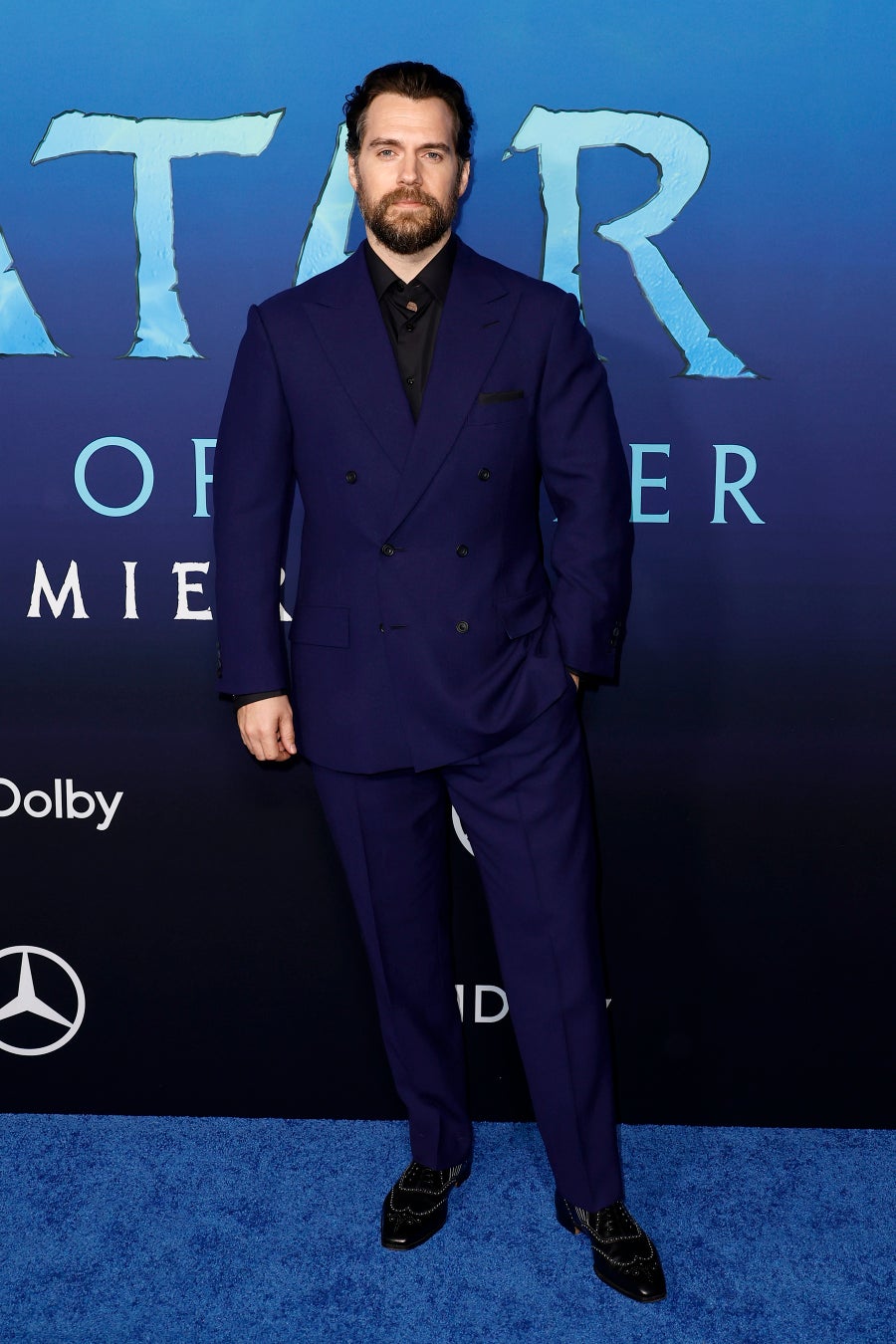 ロサンゼルスで開催された「アバター:ウェイ・オブ・ウォーター」プレミアのレッドカーペットにて、テンセル™ブランドの繊維を使用したハンツマンのカスタムアイテムを着用したヘンリー・カヴィル。写真提供:Getty Images/RCGD Global