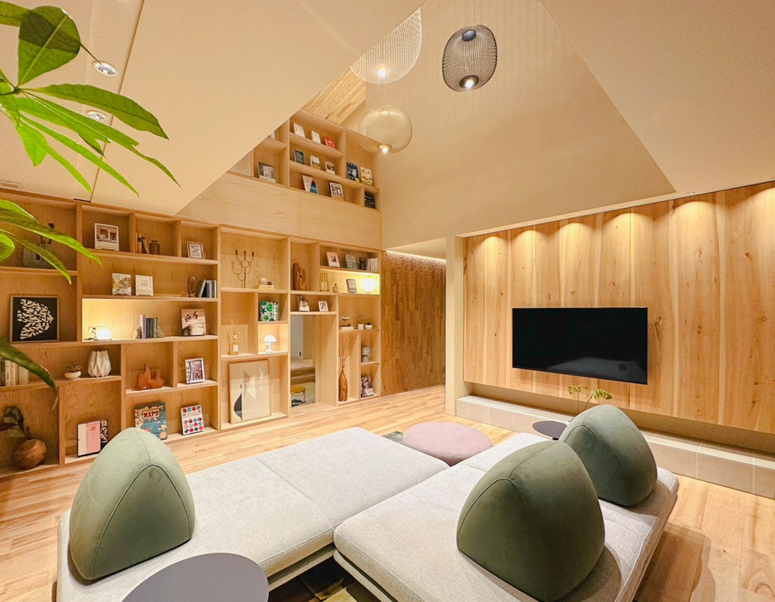 そんな「書肆 朝陽館」がセレクトした書籍の数々を、⾃然素材のインテリアに囲まれながらゆっくりとご覧いただけるモデルハウスとなっております。