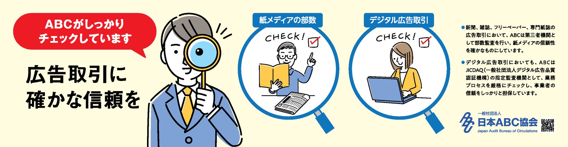一般社団法人 日本ABC協会(所在地:東京都千代田区、専務理事:加藤弘志)は、2025年10月、協会の活動および社会的意義を広く周知することを目的とした新たなPR広告を公開いたしました。