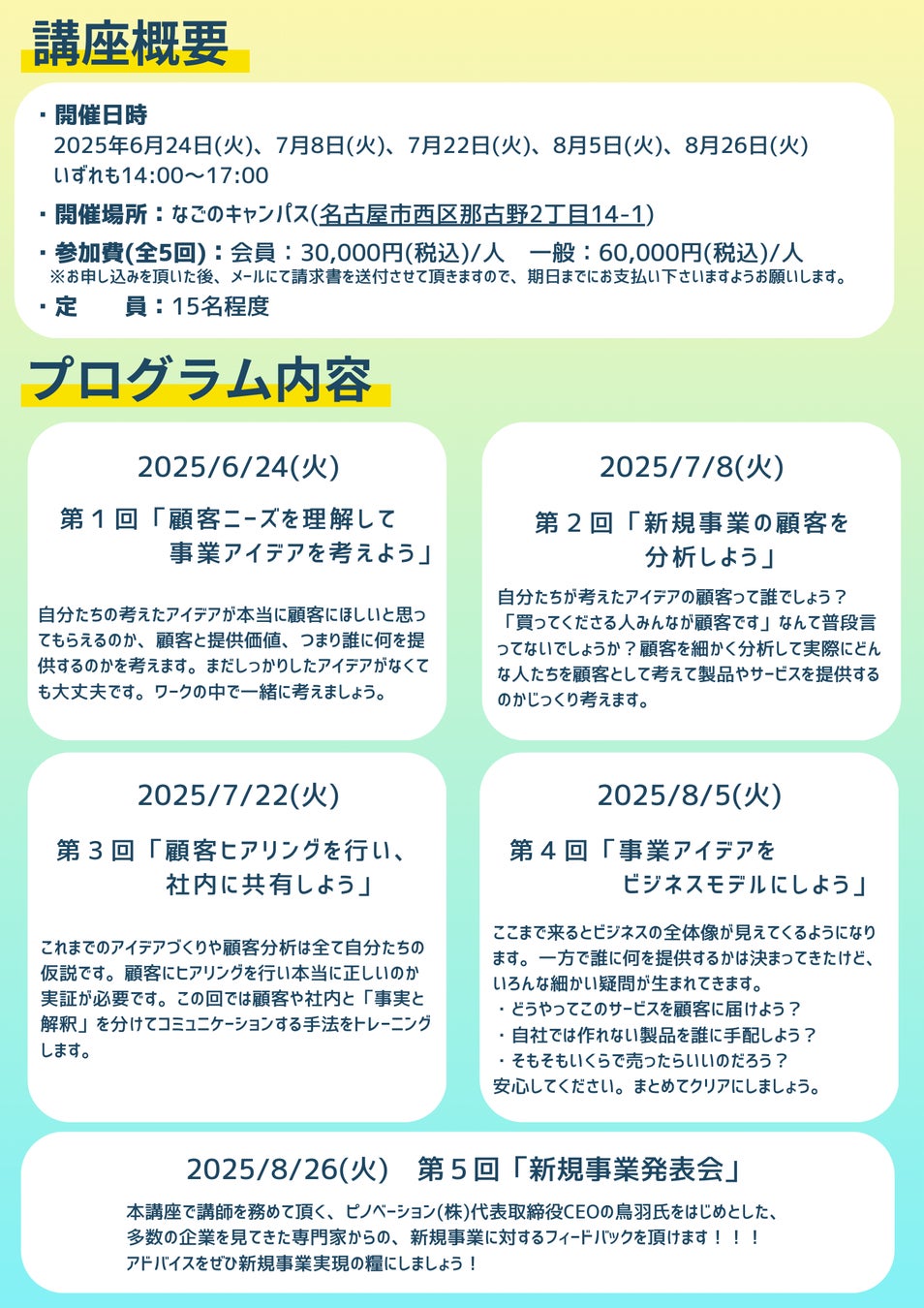 ・参加費(全5回):名古屋商工会議所会員:30,000円(税込)/人 一般:60,000円(税込)/人
