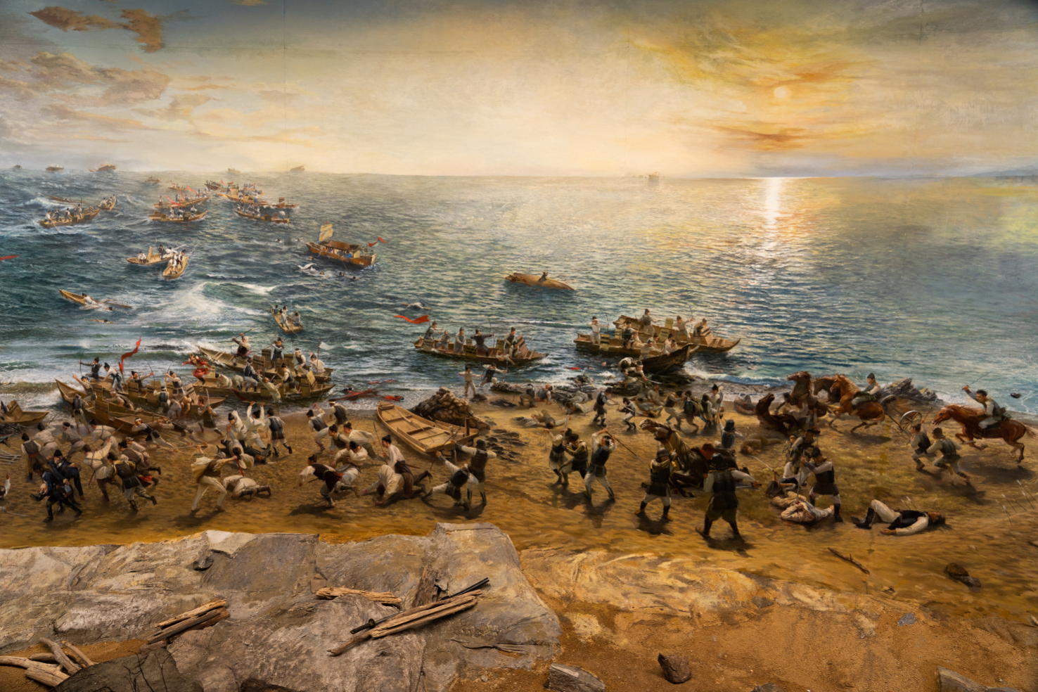 このパノラマ館では、縦5m、横40mの巨大な油絵とジオラマの連続した作品が鑑賞者を取り囲む。まるでだまし絵のような空間に迷い込んだような錯覚に陥ります。平家物語の源平合戦をもとに、時空間を超えた戦いのドラマが描かれており、まるで現実の風景ではないかと思うほどのリアルな感覚を味わうことができます。