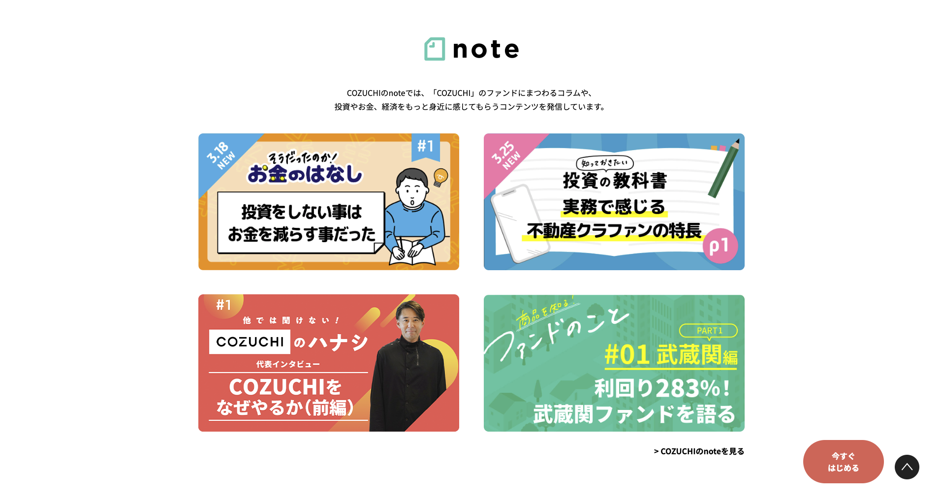 COZUCHIや投資そのものに関心をもっていただくために、SNSの一つであるnoteにおいてコンテンツを作成・発信して参ります。