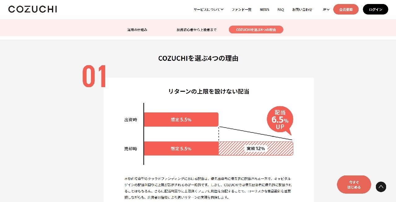 かねてからサービスをご利用いただいている投資家の皆さまにとっては、これまで以上にCOZUCHIのファンになっていただき、投資経験のない方々にとってはCOZUCHI投資を始める一歩を後押しできるような有益なコンテンツの充実を図りたいと考えております。
