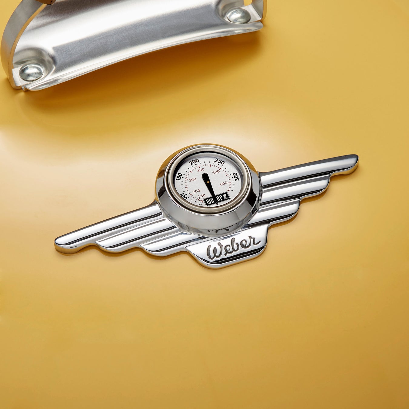 ケトルには、スタイリッシュな50年代車のボンネットエンブレムを思い起こさせるオーナメント付の蓋用温度計、ホワイトウォールの車輪、ウッド調のナイロンハンドル、頑丈な収納用ユーティリティトレイを備えます。 さらに、ヴィンテージのWeberスチールサインとボトルオープナーの2つのコレクターズアイテムを同梱。オリジナルパッケージでお届けします。