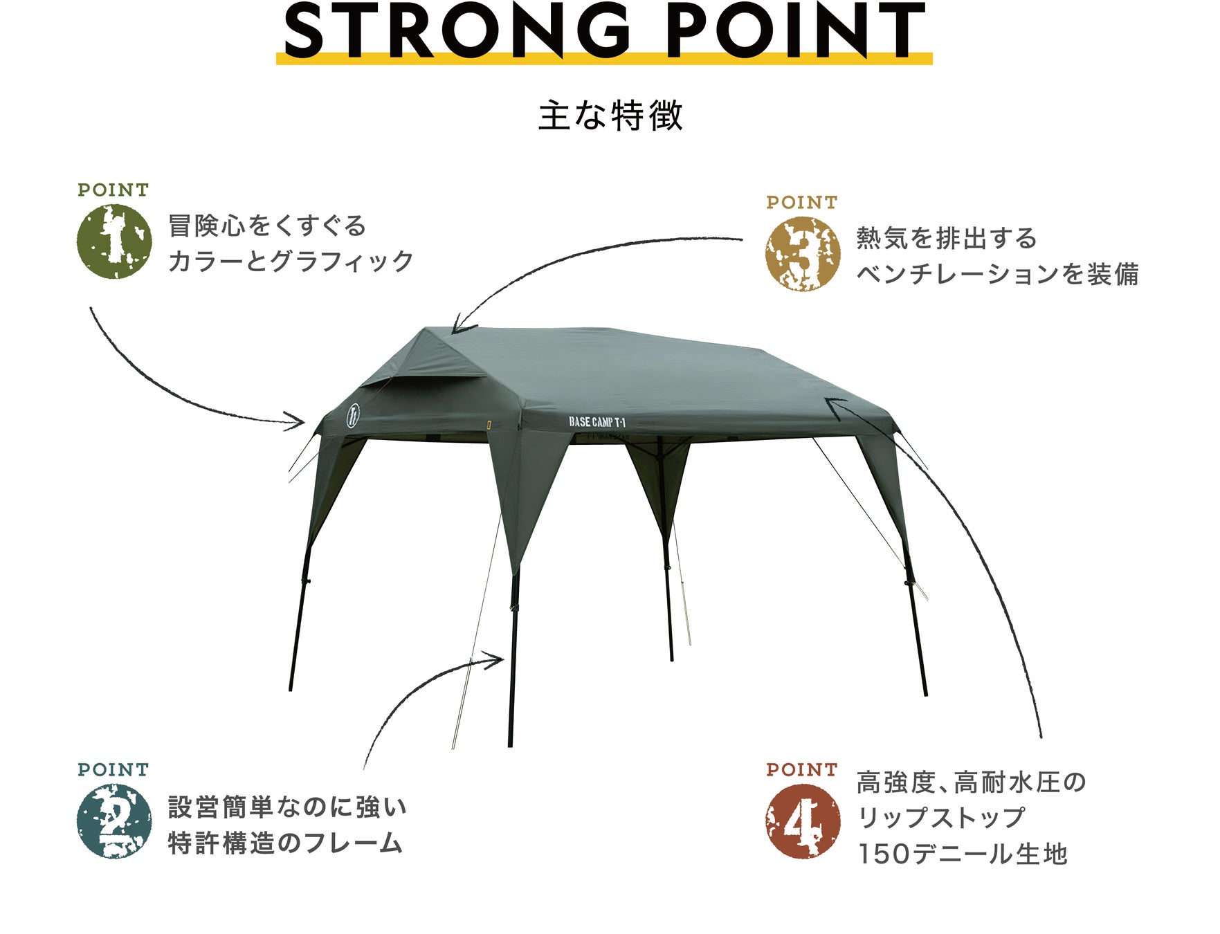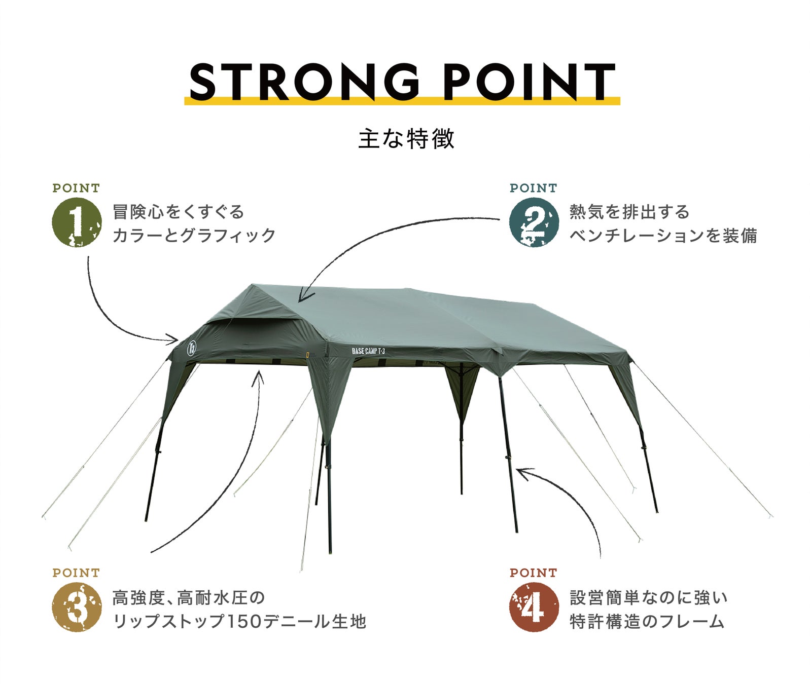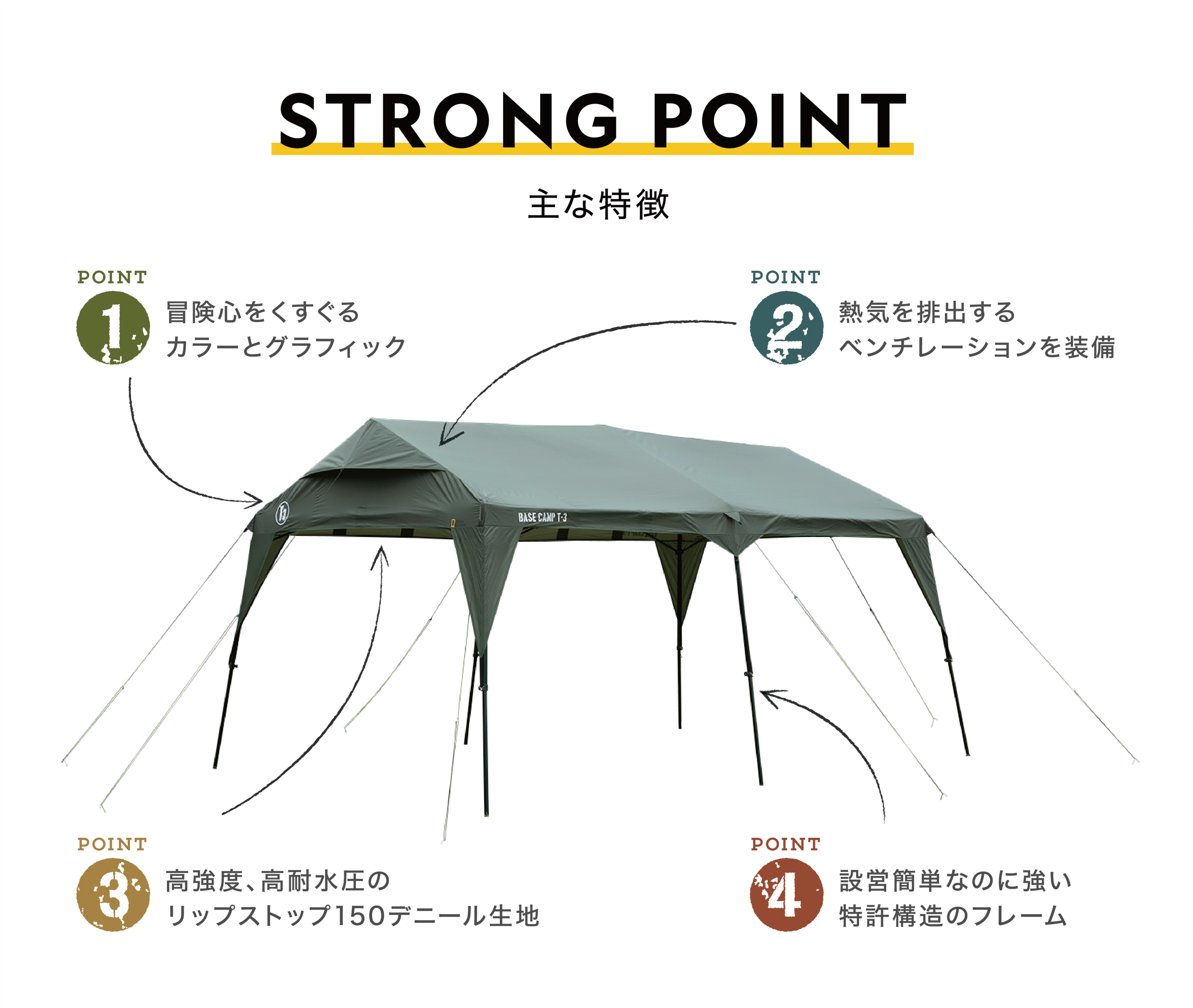 ベースキャンプとして機能する長方形のレクタングル型タープ