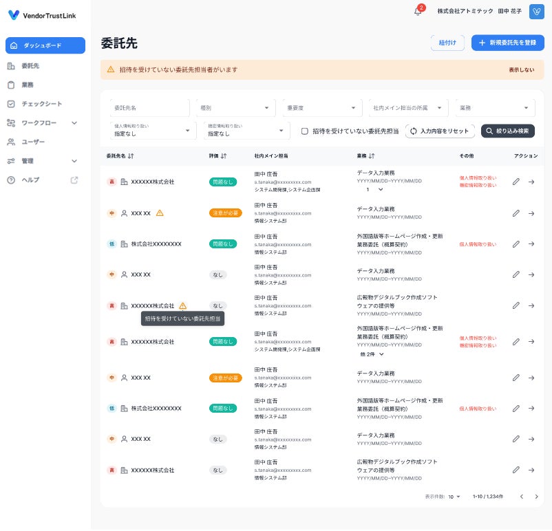 株式会社アトミテック(本社:東京都港区、代表取締役社長:中西 康貴)は、委託先リスク管理を自動化するサービス「VendorTrustLink(ベンダートラストリンク)」を10月28日(月)よりβ(ベータ)版として提供開始いたしました。月3社限定で利用企業を募集いたします。
