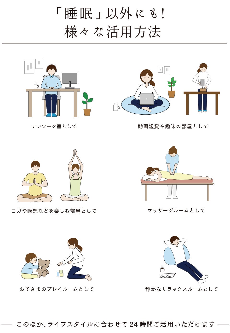 「究極の寝室®」の工法をそのままに、自然の恵みをふんだんに取り入れ、まるで森の中で寝ているかのような安らぎと質の良い睡眠をご自宅やオフィスで簡単にお楽しみいただけます。