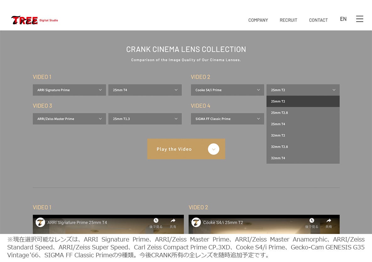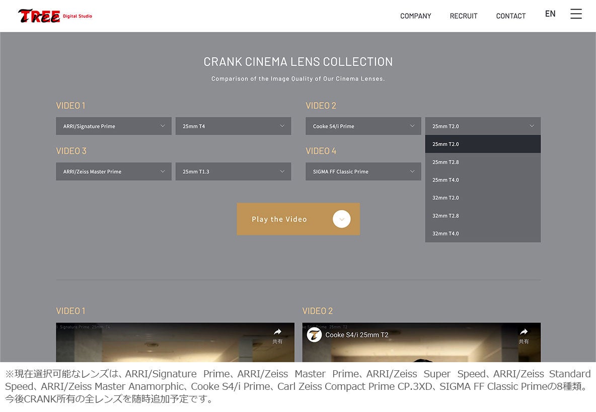 TREE Digital Studio、シネマトグラファー向けに「CRANK CINEMA LENS COLLECTION」ページを開設