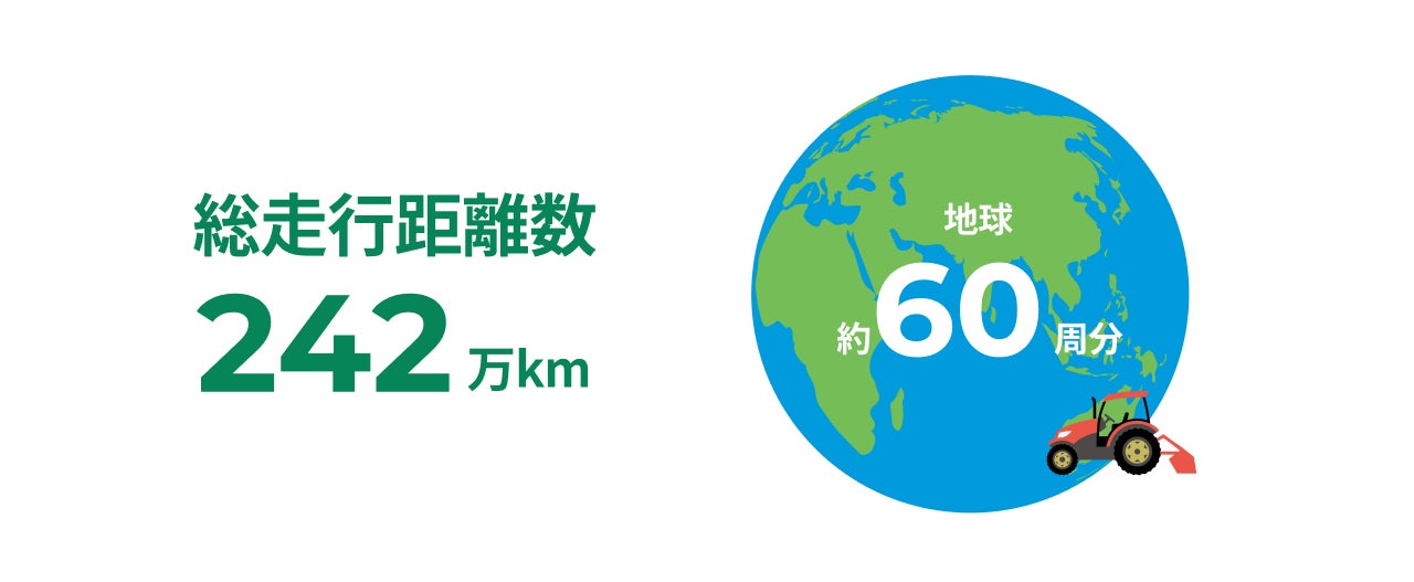 世界中の農業者様が、当社アプリ「AgriBus-NAVI」で地球60周分(年間)走行中!